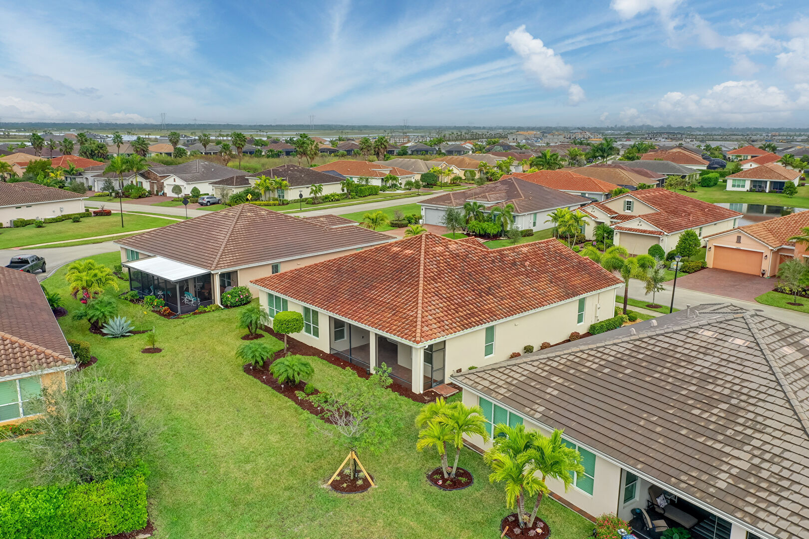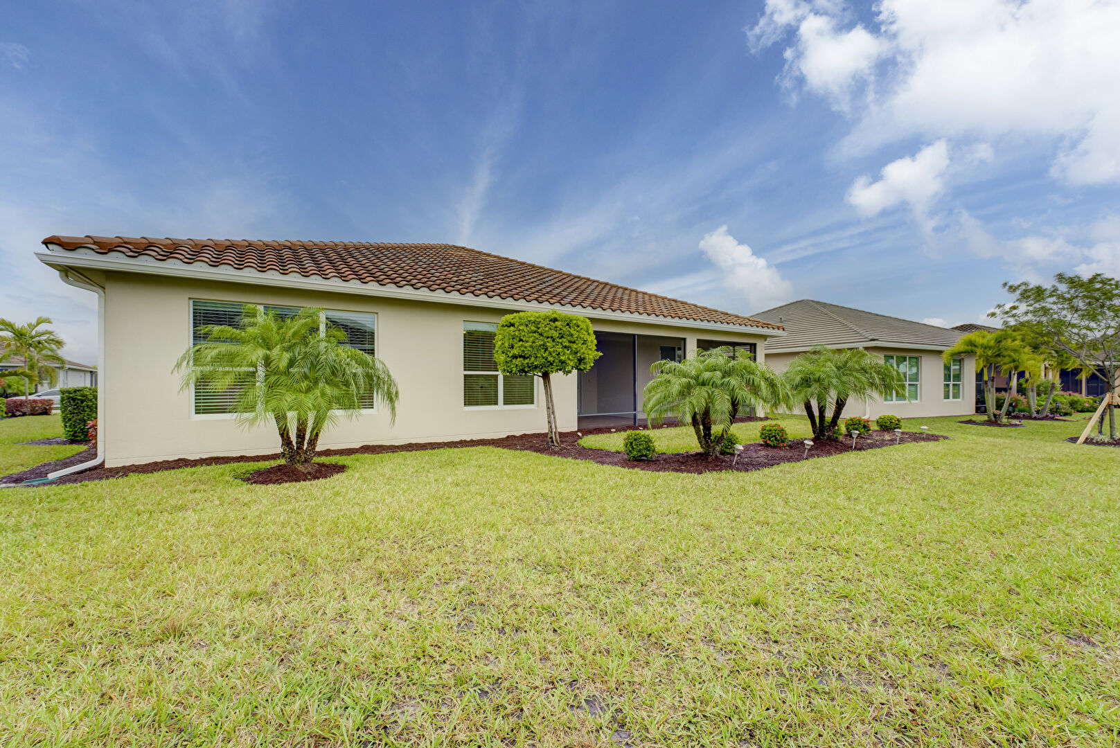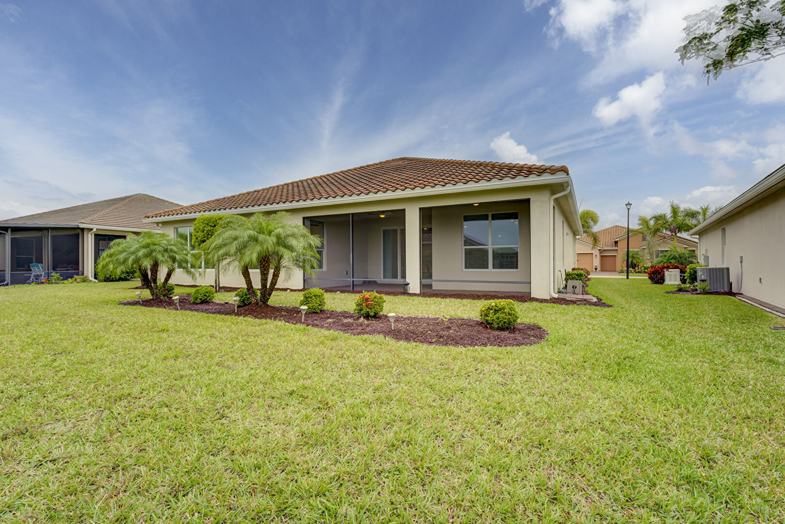 Downspout, Gutters, Lawn, Stucco Siding, Sunroom, Tile Roof, Central Ac, Tile Roof
