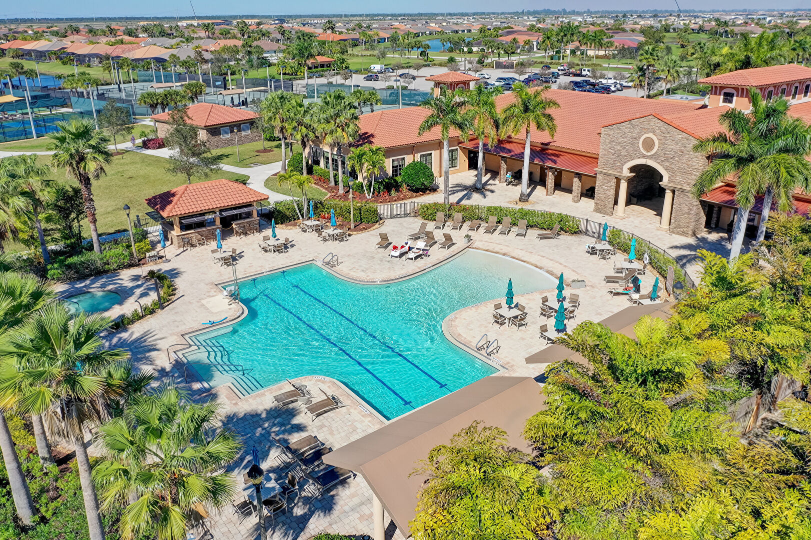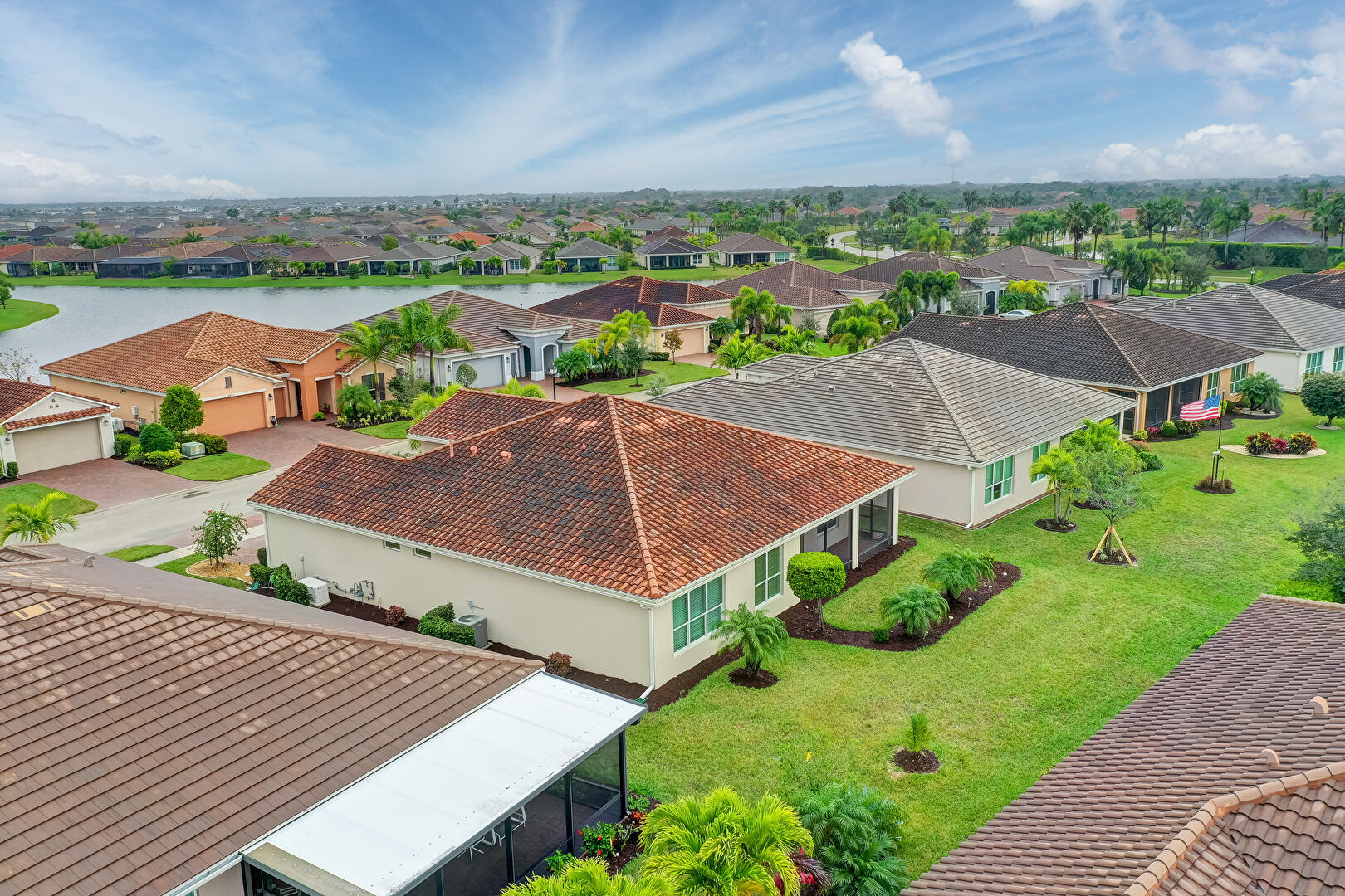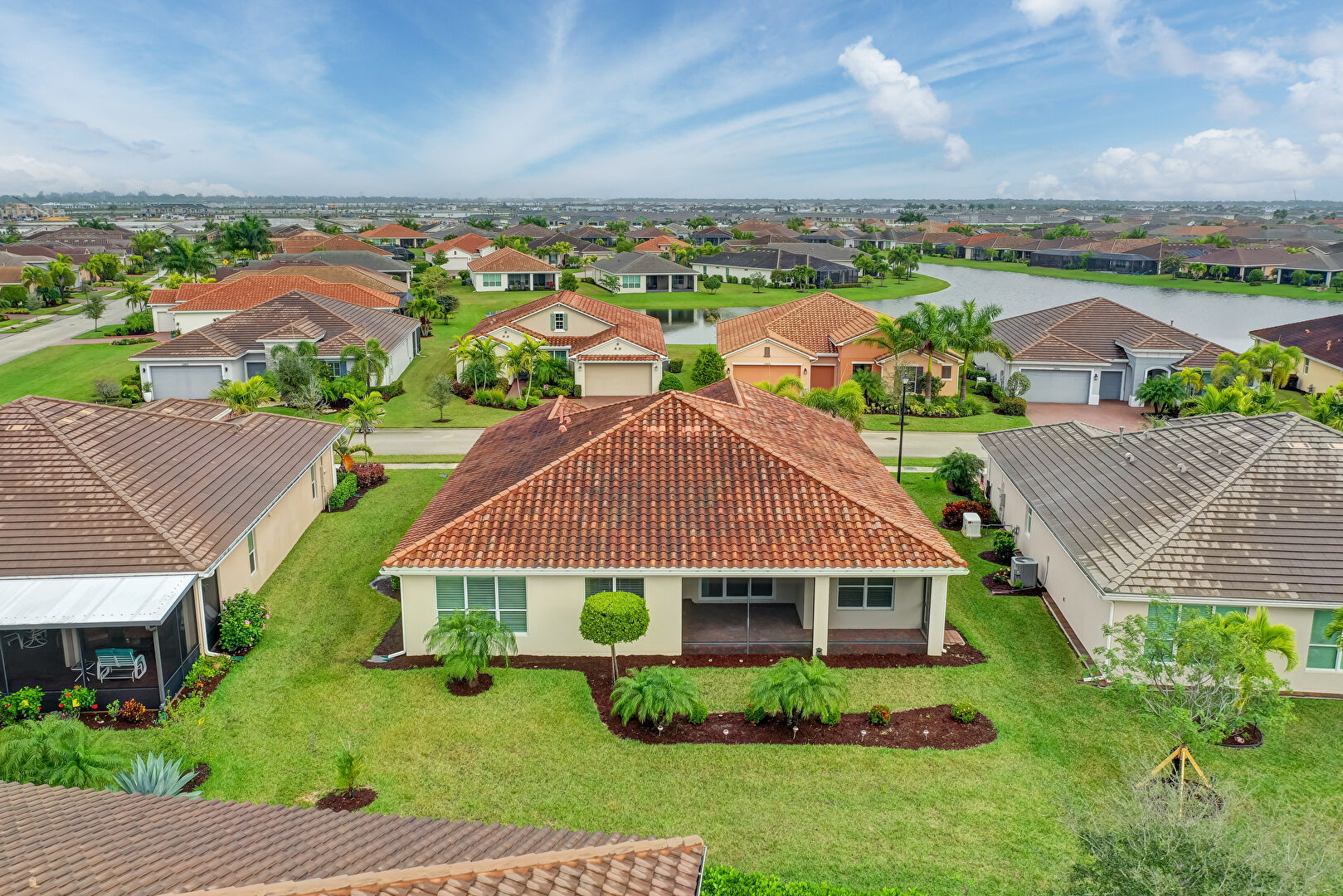Downspout, Gutters, Lawn, Stucco Siding, Sunroom, Tile Roof, Central Ac, Tile Roof