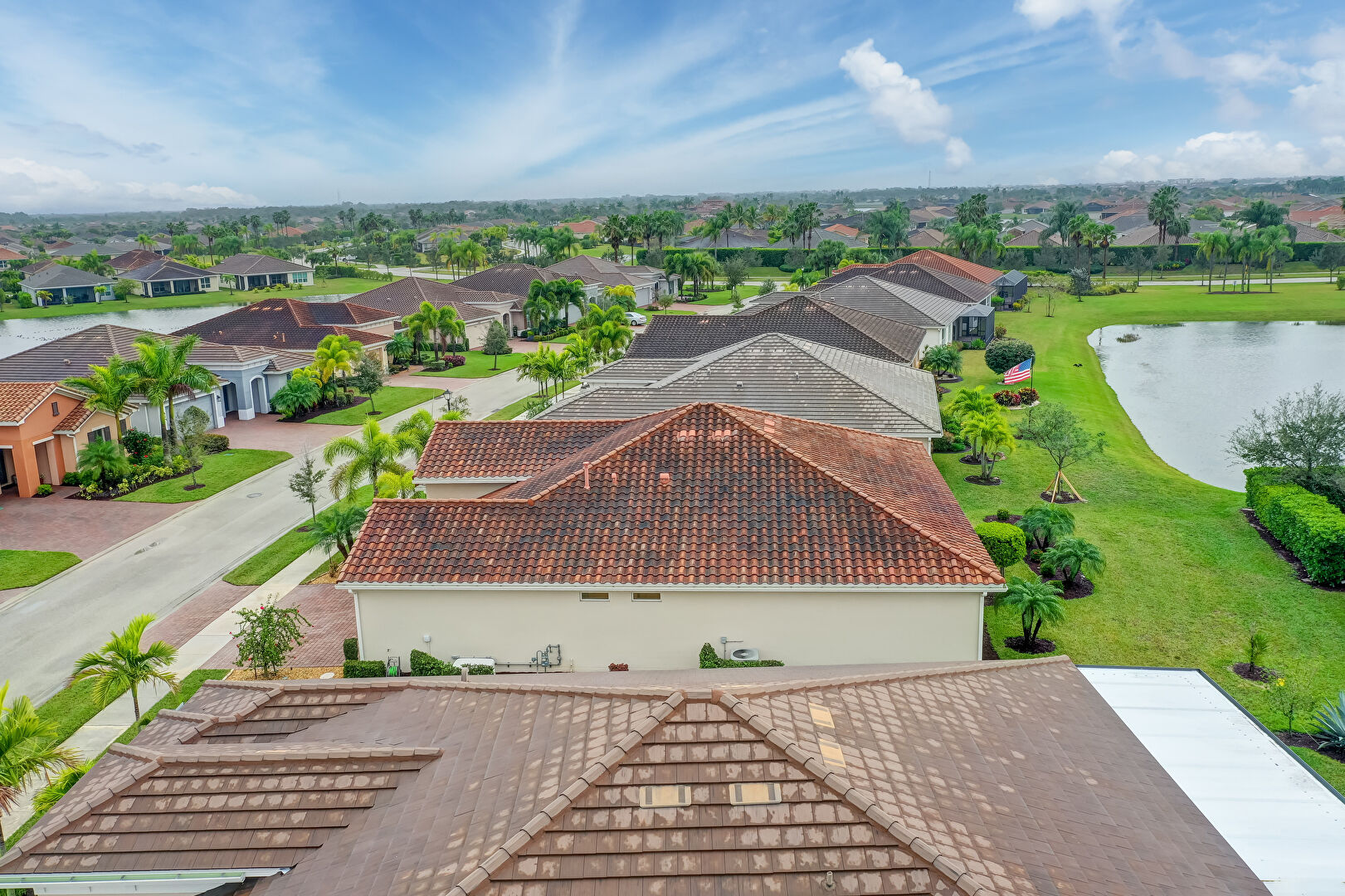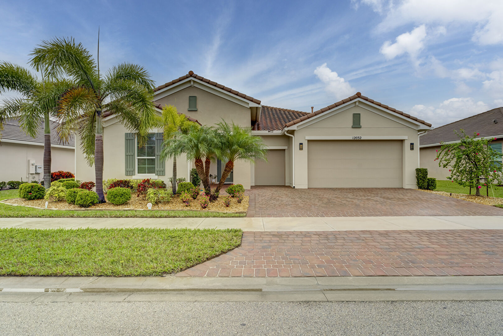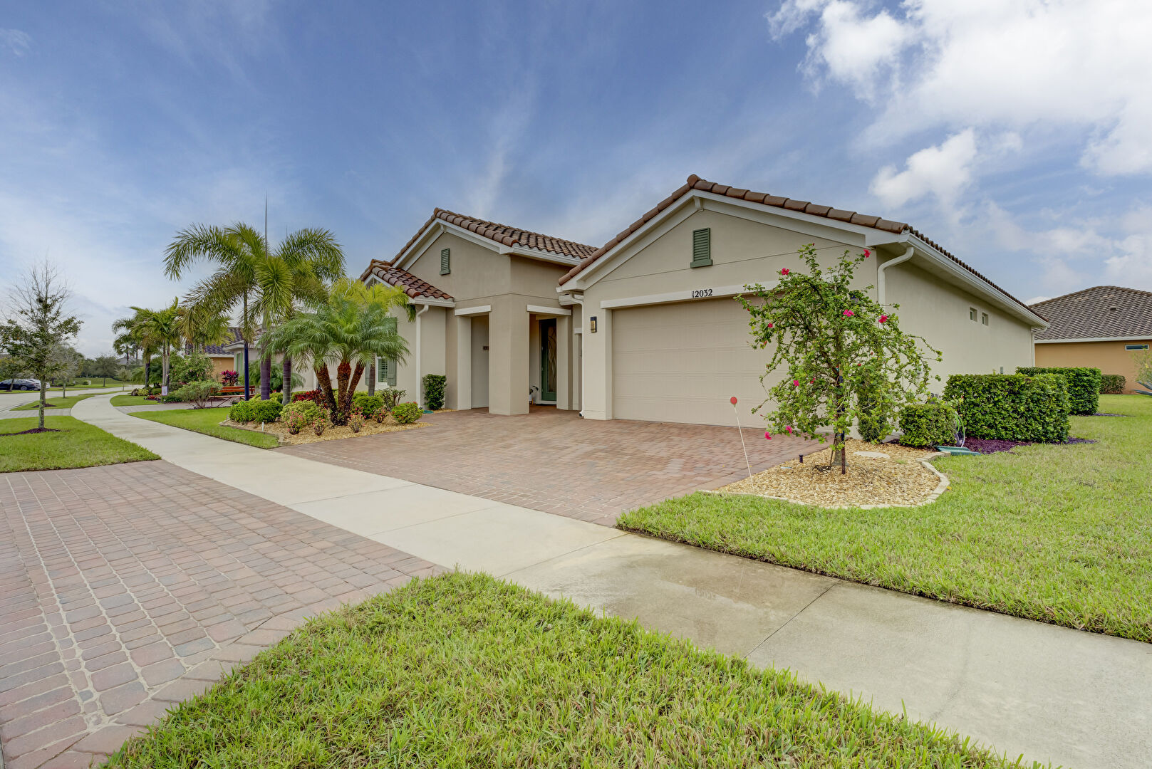 Downspout, Driveway, Electric Meter, Gutters, Lawn, Stucco Siding, Tile Roof, Driveway, Lawn, Stucco Siding, Tile Roof