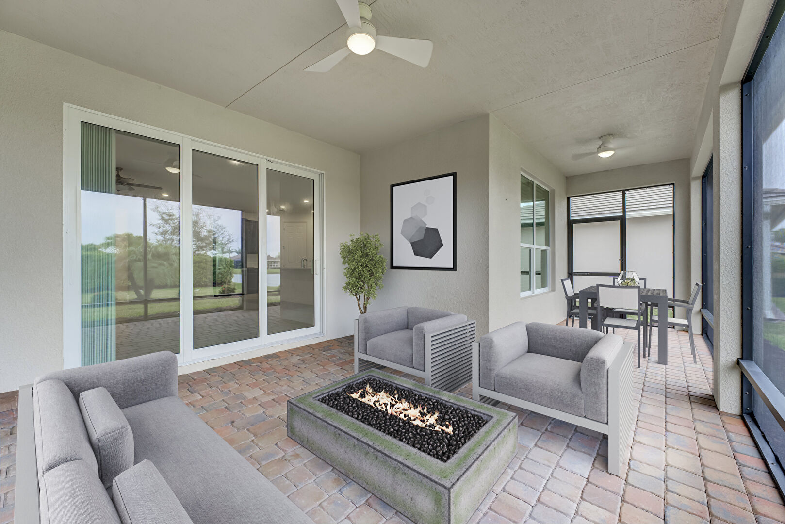 Ceiling Fan, Fire Pit, Natural Light, Outdoor Dining Area, Sunroom, Outdoor Living Space