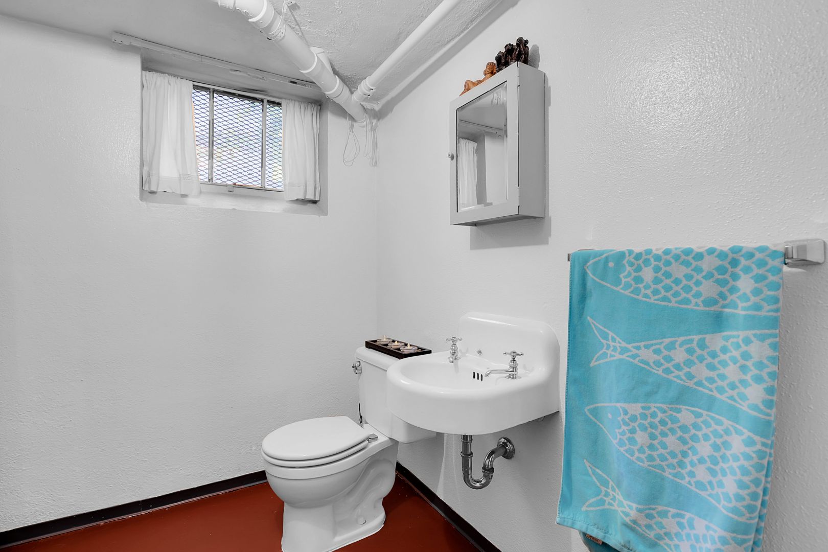 Skylight, Tile Floor, Vanity, Vaulted Ceiling, Natural Light