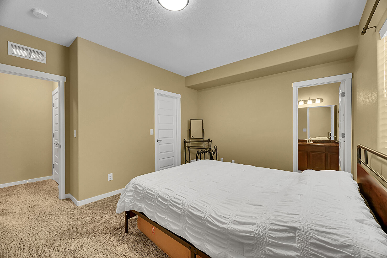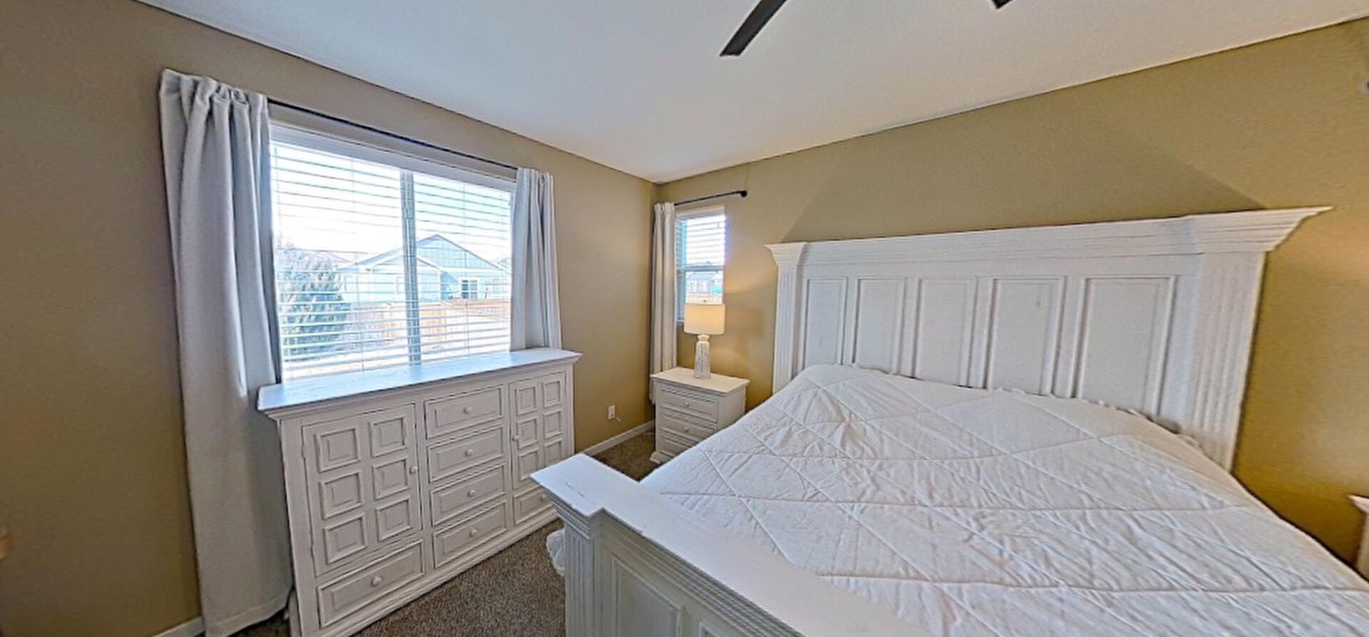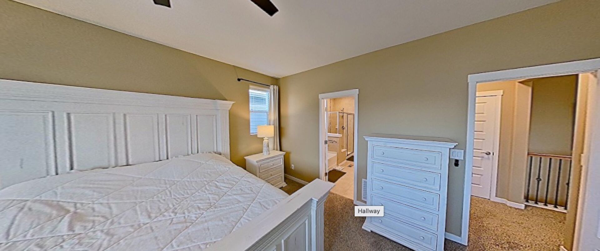 Carpet, Ceiling Fan, Drywall, Ensuite Bathroom, Natural Light, Baseboards Wall