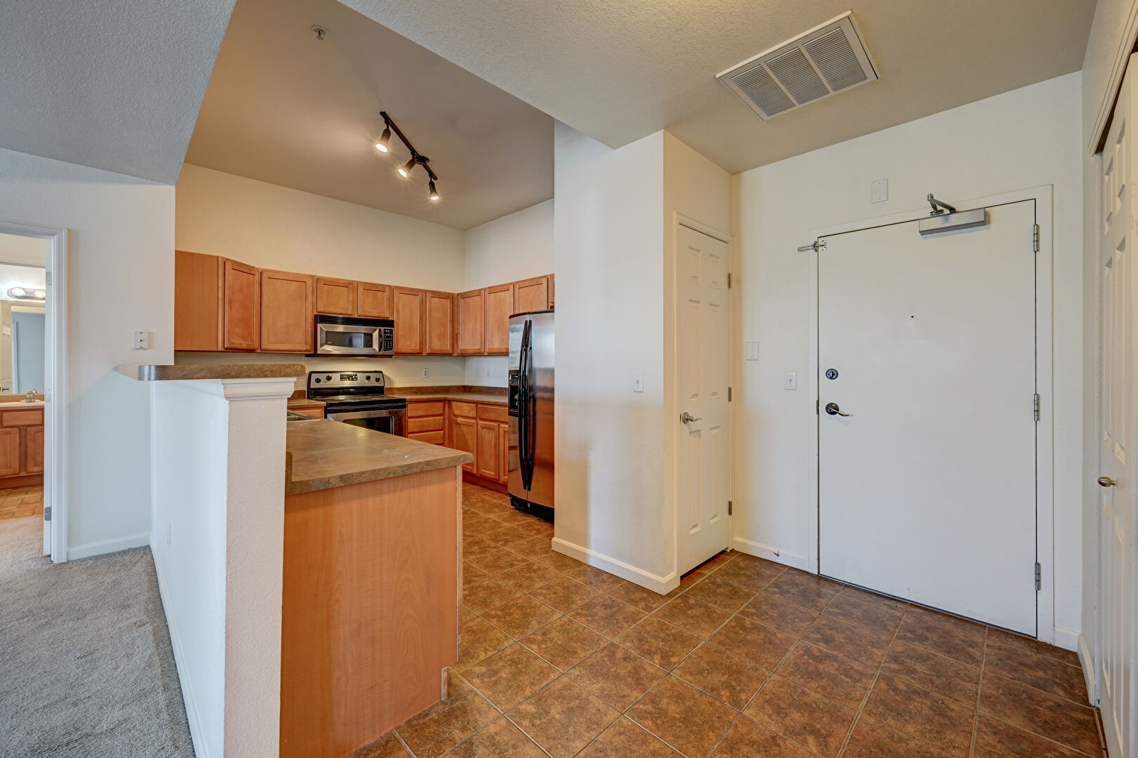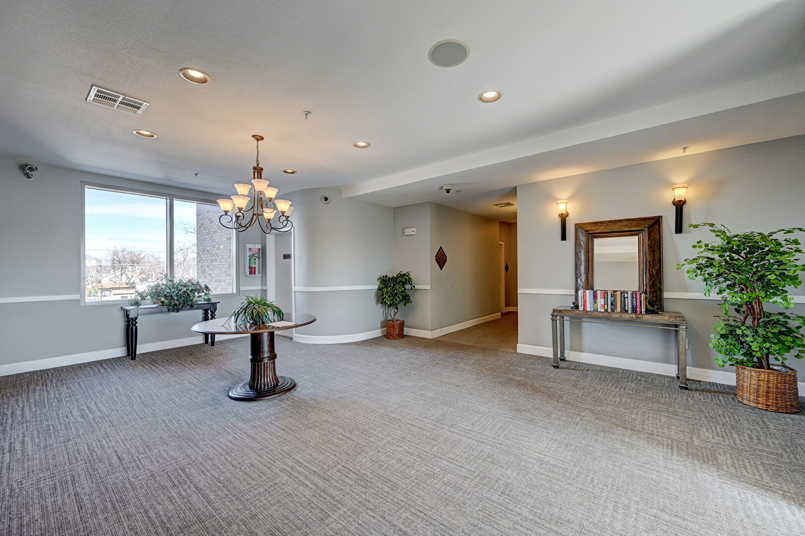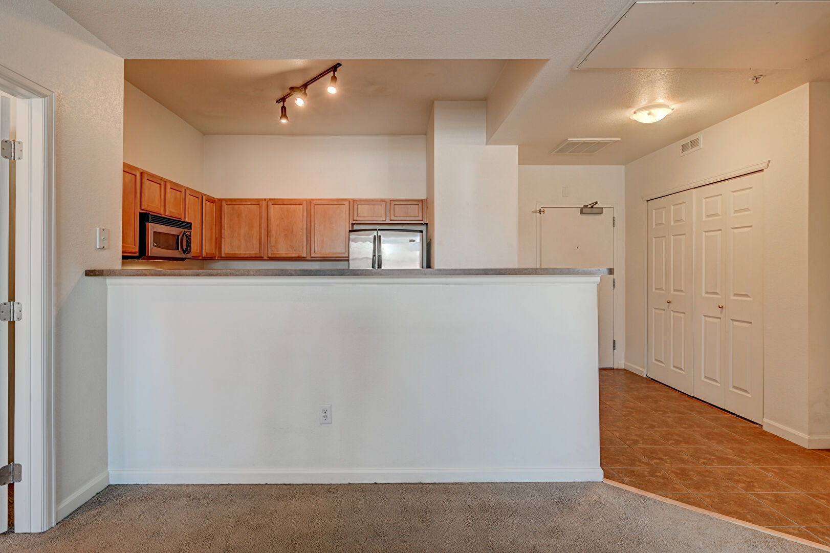 Carpet, Natural Light, Textured Ceiling, Tile Floor, Track Lighting, Textured Ceiling, Tile Floor, Track Lighting
