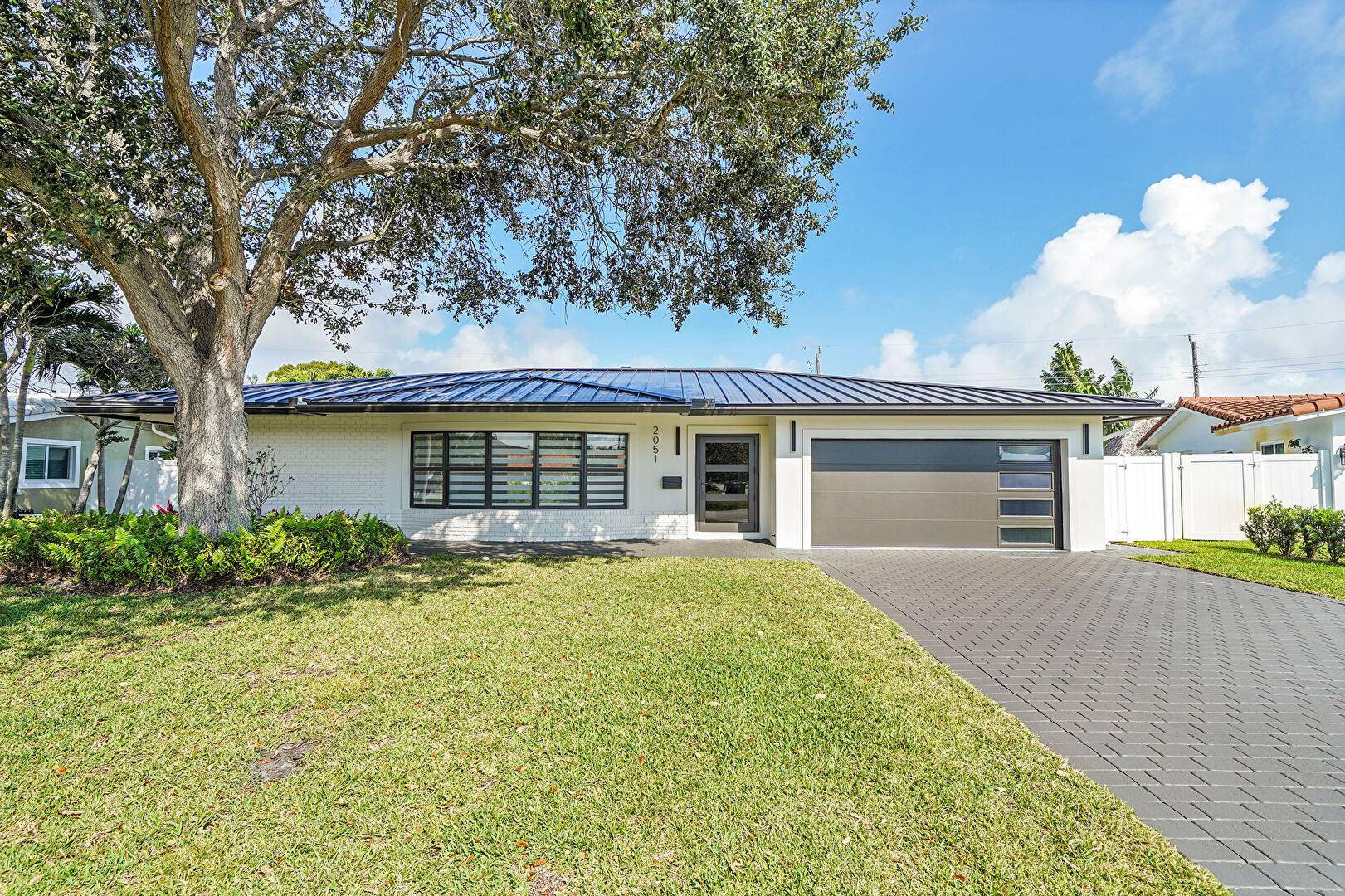 Brick Siding, Downspout, Driveway, Fence, Gate, Lawn, Metal Roof, Standing Seam Roof, Stucco Siding, Driveway, Metal Roof, Standing Seam Roof