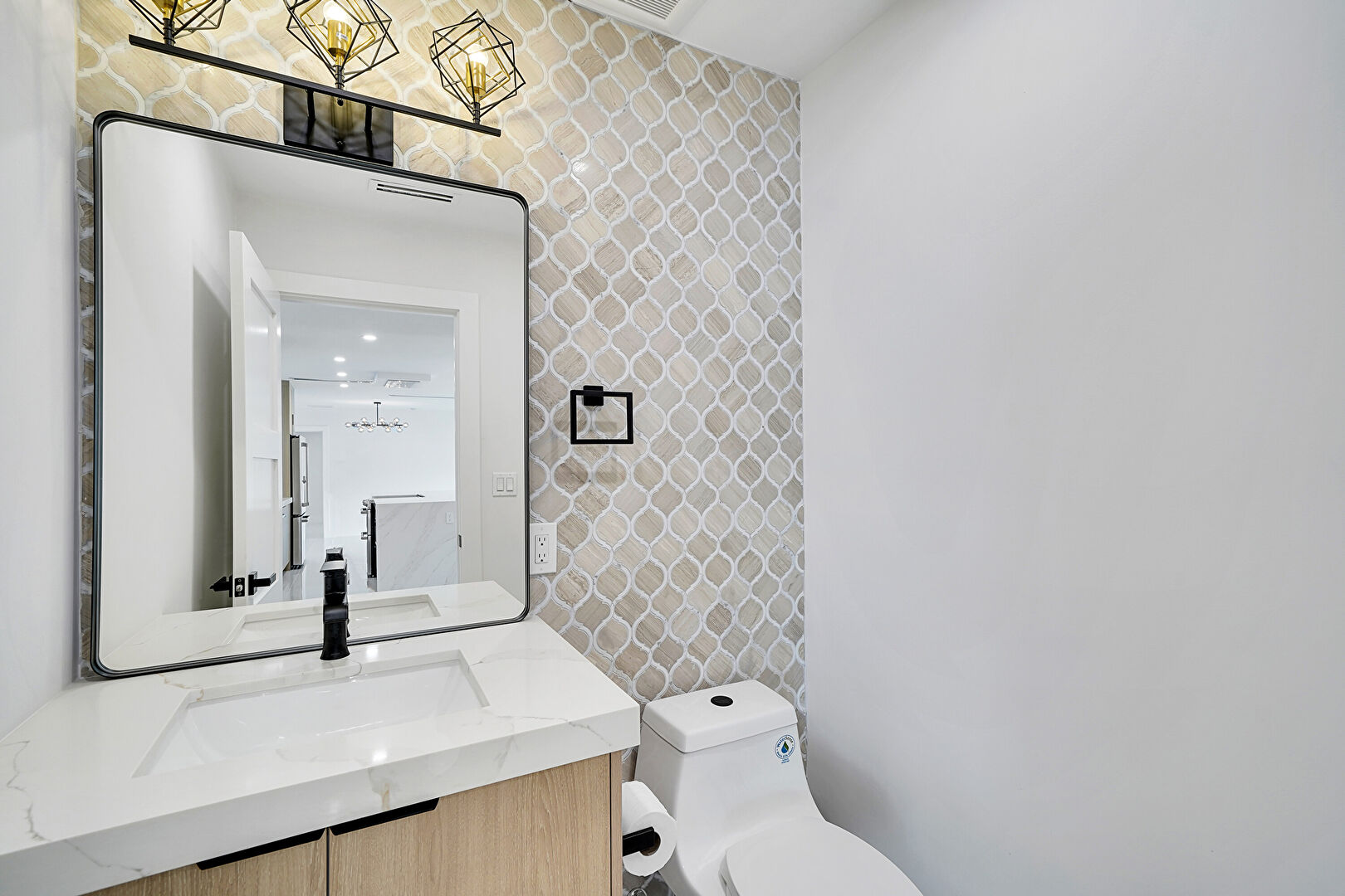 Baseboards Wall, Drywall, Natural Light, Recessed Lighting, Vent, Marble Finish Floor