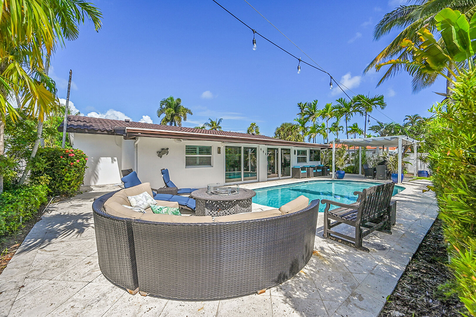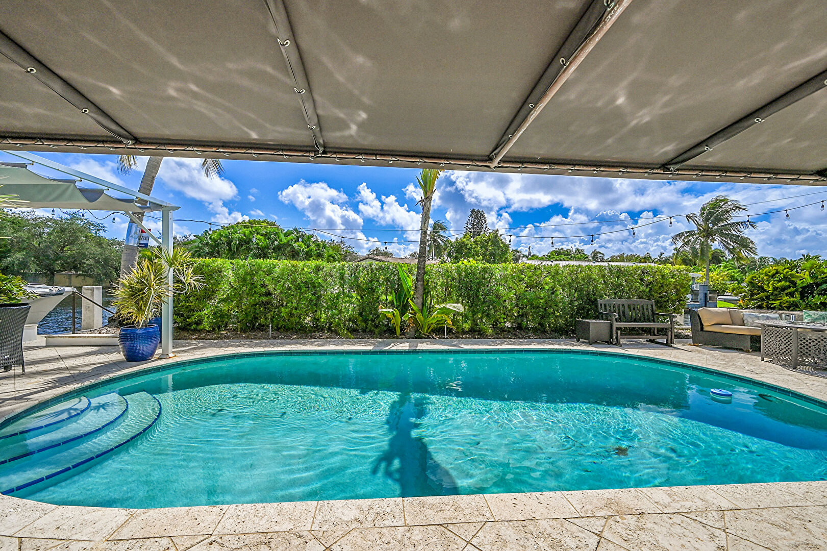 Patio, Pergola, Pool, Stucco Siding, Tile Roof, Water View, Waterfront, Waterfront Bulkhead