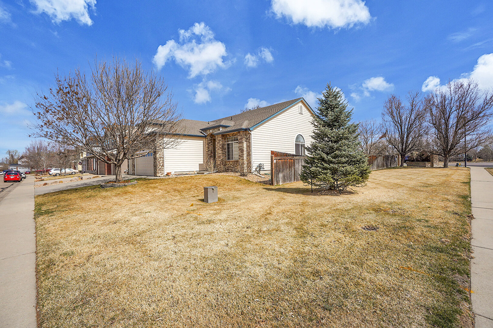 Brick Siding, Dormer Roof, Downspout, Driveway, Fence, Gas Meter, Gutters, Horizontal Siding, Lawn, Shingle Roof, Stone Siding, Driveway, Fence, Gutters, Lawn, Stone Siding