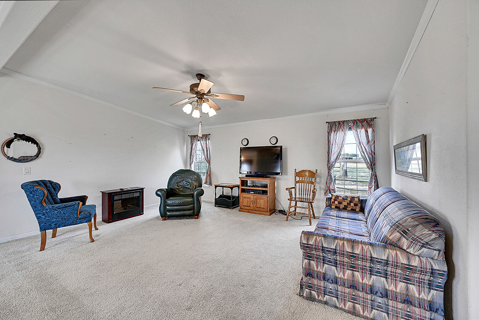 Baseboards Wall, Beamed Ceiling, Carpet, Ceiling Fan, Crown Molding, Drywall, Fireplace, Natural Light, Textured Ceiling, Vaulted Ceiling, Vent, Baseboards Wall, Beamed Ceiling, Carpet, Drywall, Natural Light, Textured Wall
