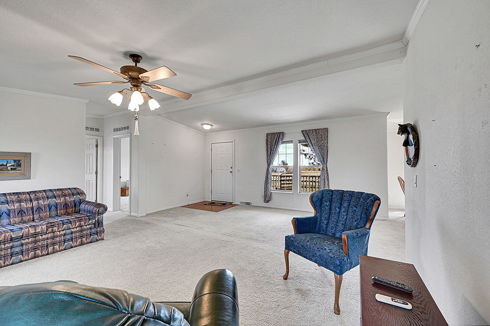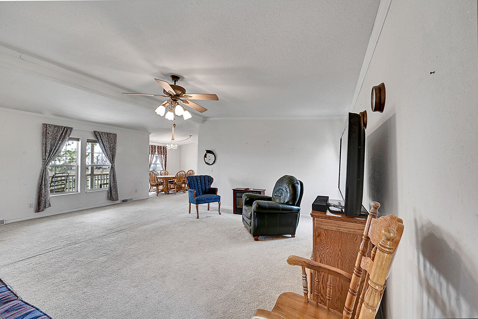 Baseboards Wall, Carpet, Ceiling Fan, Crown Molding, Drywall, Natural Light, Notable Chandelier, Textured Ceiling, U Shaped Kitchen, Vent, Carpet, Ceiling Fan, Crown Molding, Notable Chandelier