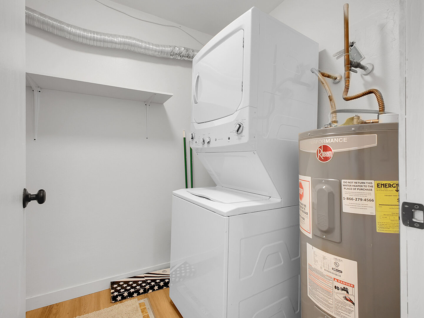 Baseboards Wall, Drywall, Laundry, Water Heater, Wood Finish Floor, Drop Stairs