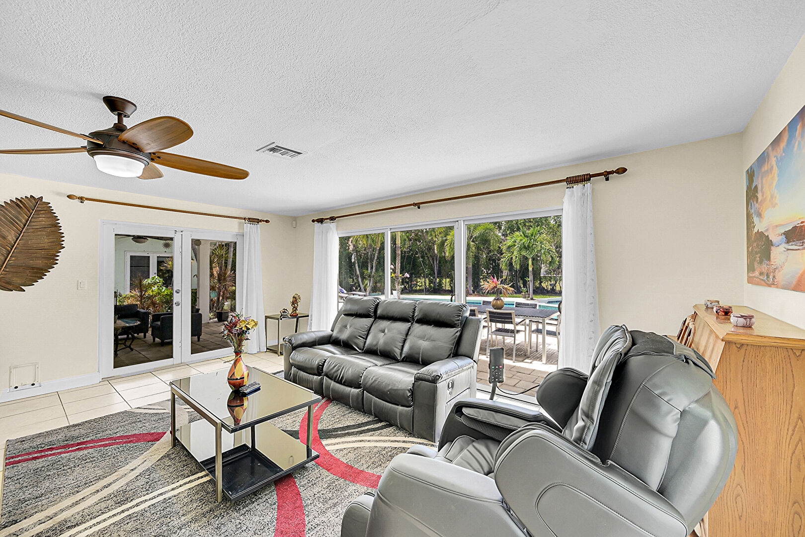 Ceiling Fan, French Doors, Grill, Outdoor Dining Area, Outdoor Living Space, Patio, Pool, Vent, French Doors, Outdoor Living Space, Patio, Pool Hot Tub Combo, Vent
