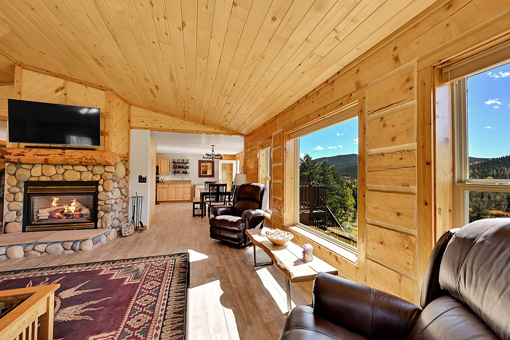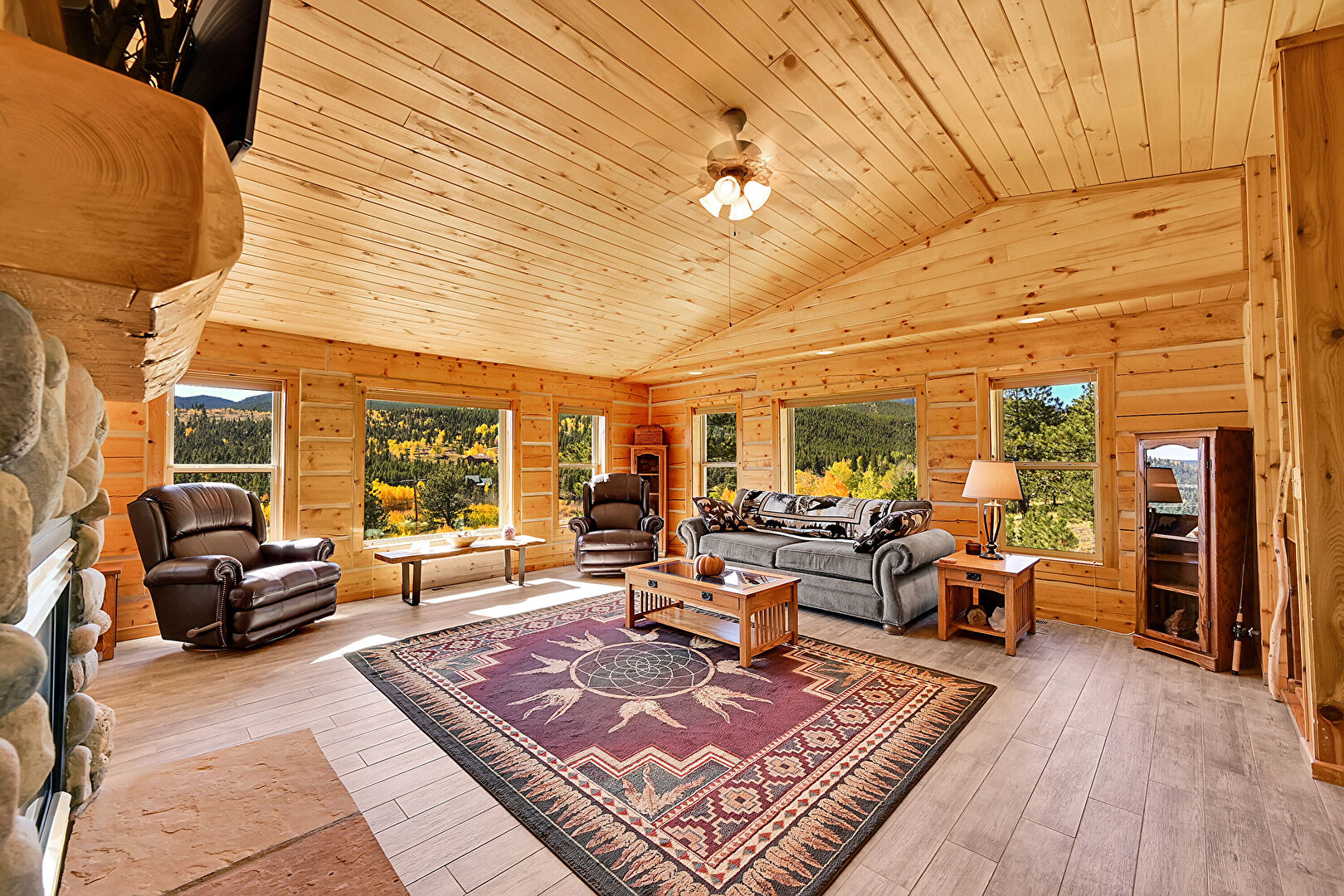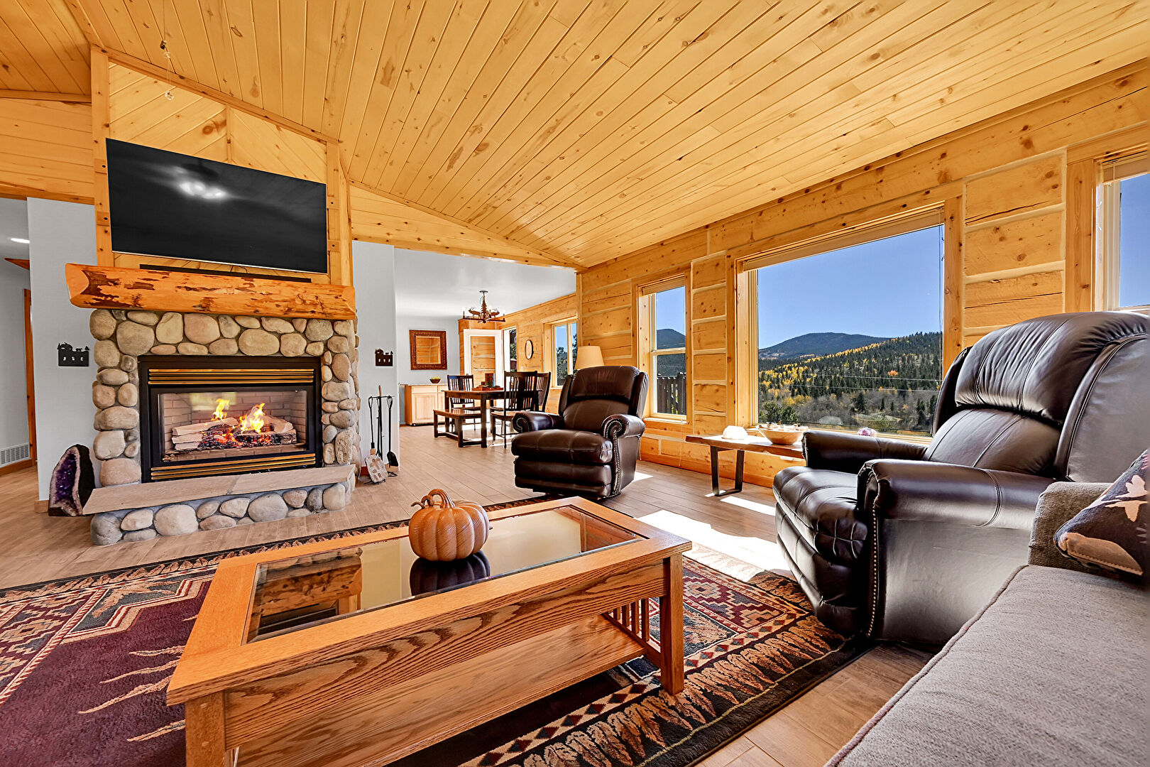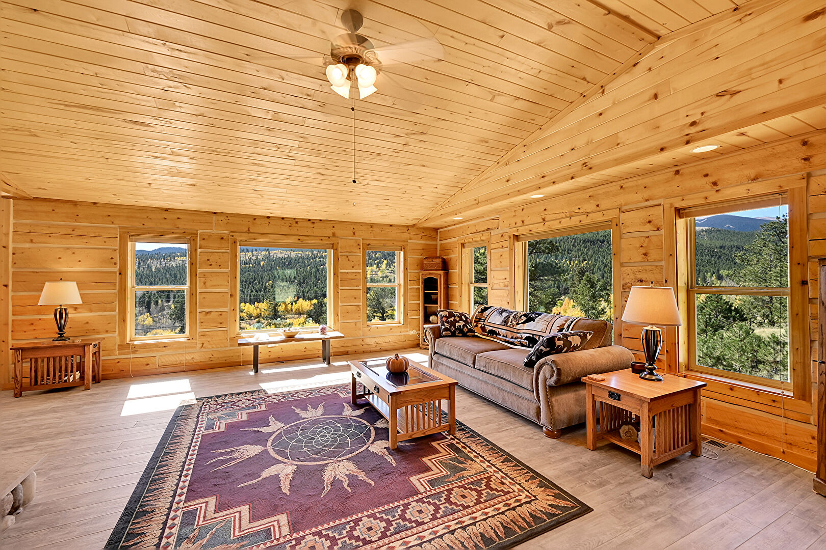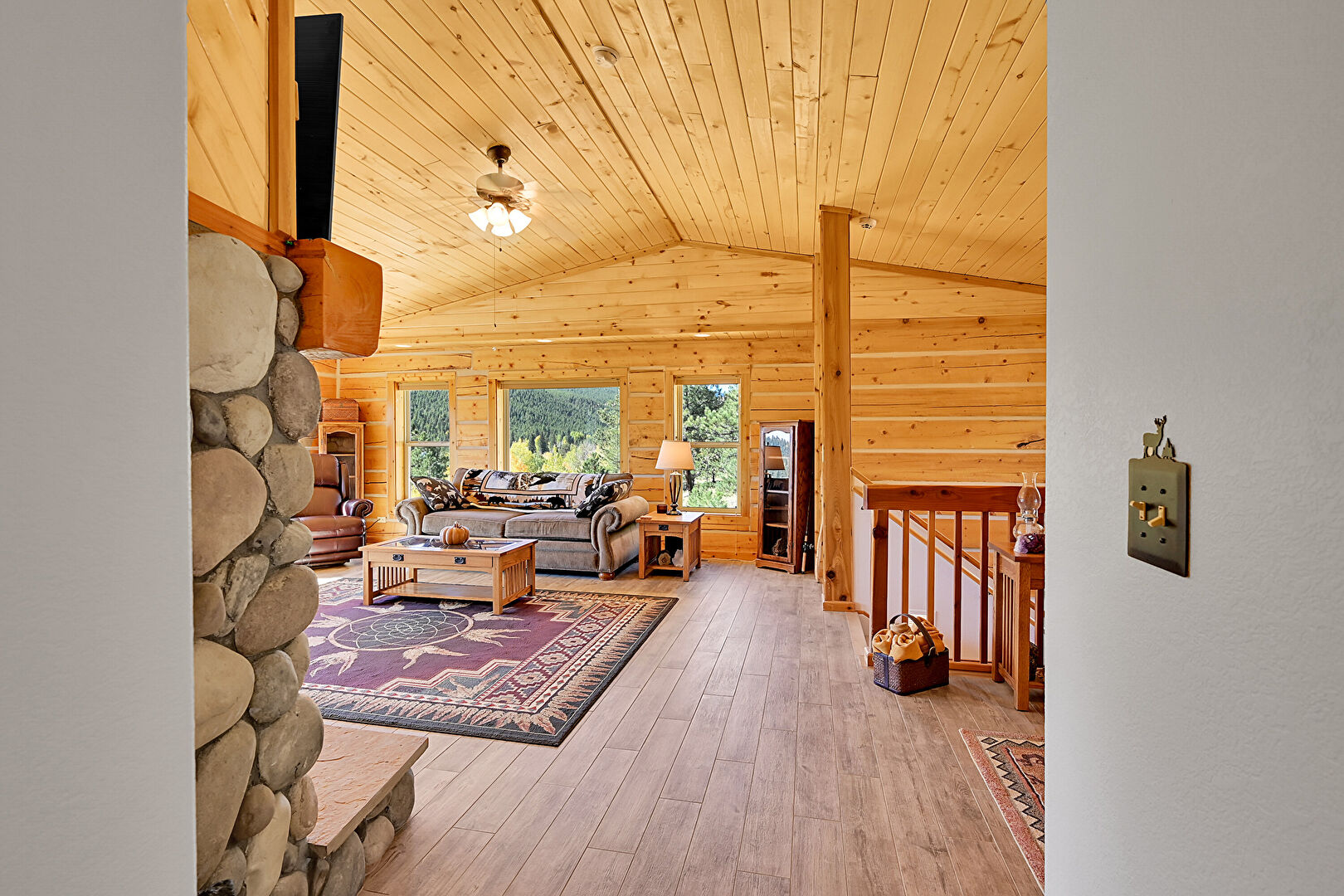 Ceiling Fan, Fireplace, Natural Light, Notable Chandelier, Recessed Lighting, Vaulted Ceiling, Wood Ceiling, Wood Finish Floor, Wood Wall