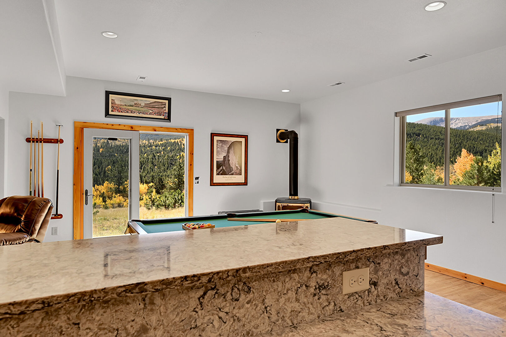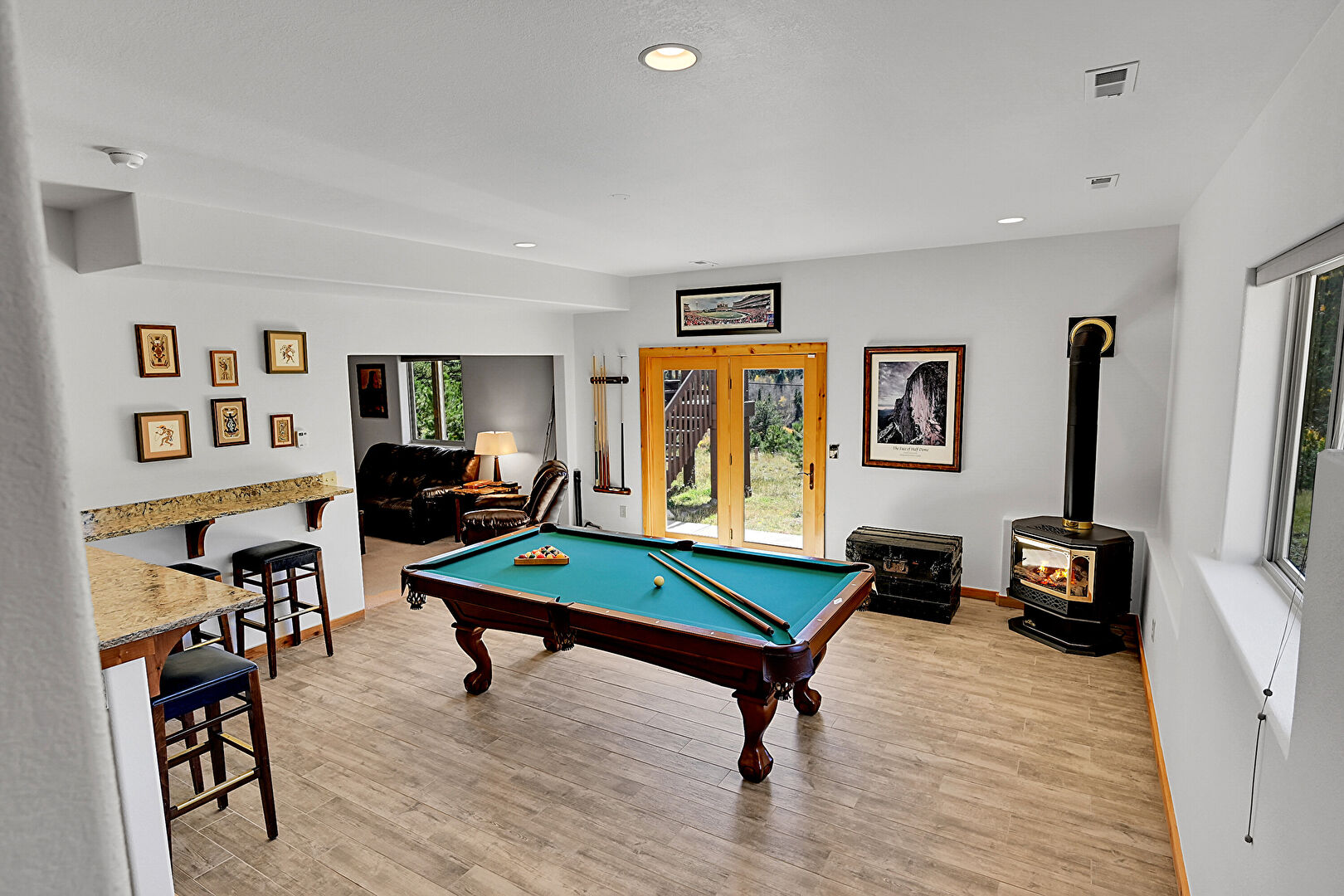 Baseboards Wall, Billiards, Drywall, Mountain View, Natural Light, Recessed Lighting, Smoke Carbon Monoxide Detector, Vent, Wine Cooler, Wood Finish Floor, Wood Stove, Drywall, Recessed Lighting