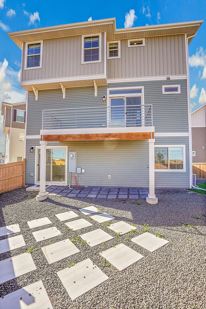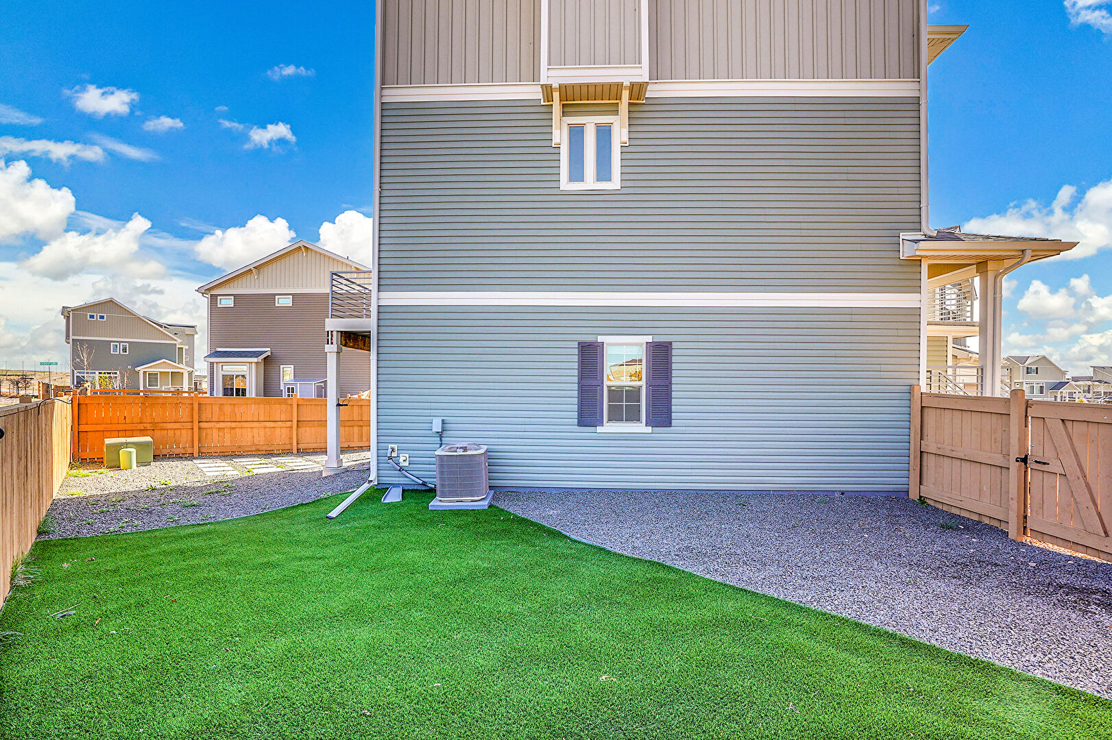 Board Batten Siding, Central Ac, Downspout, Electric Meter, Fence, Horizontal Siding, Lawn, Patio, Residential View, Vertical Siding, Balcony, Fence