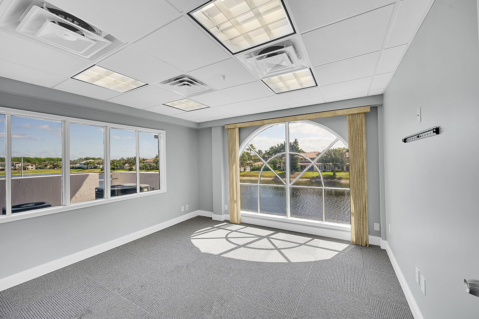 Baseboards Wall, Carpet, Drop Ceiling, Drywall, Natural Light, Vent, Water View, Waterfront, Carpet, Drywall, Waterfront