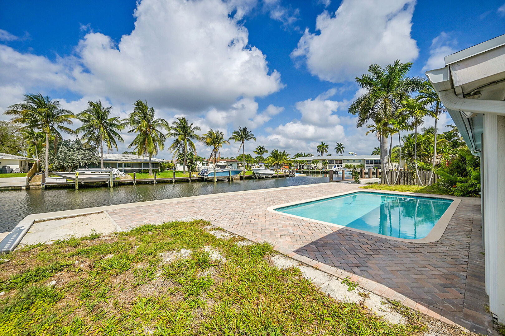 Canalfront, Fence, Patio, Pool, Water View, Waterfront, Waterfront Bulkhead, Fence, Patio