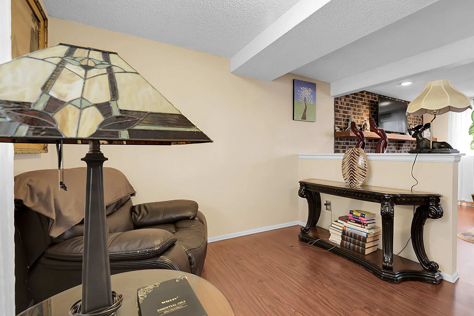Baseboards Wall, Drywall, Fireplace, Natural Light, Recessed Lighting, Smoke Carbon Monoxide Detector, Stairs, Textured Ceiling, Vent, Wood Finish Floor, Baseboards Wall, Drywall, Natural Light, Recessed Lighting, Stairs, Textured Ceiling