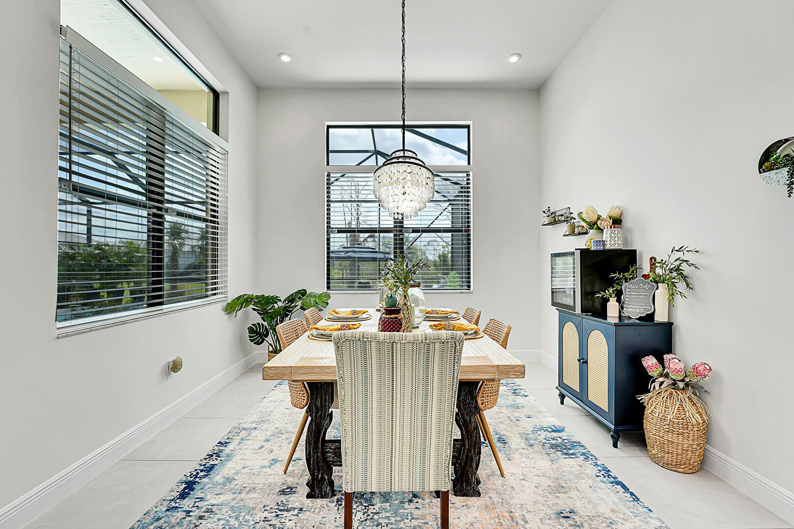 Baseboards Wall, Drywall, Notable Chandelier, Recessed Lighting, Tile Floor, Natural Light