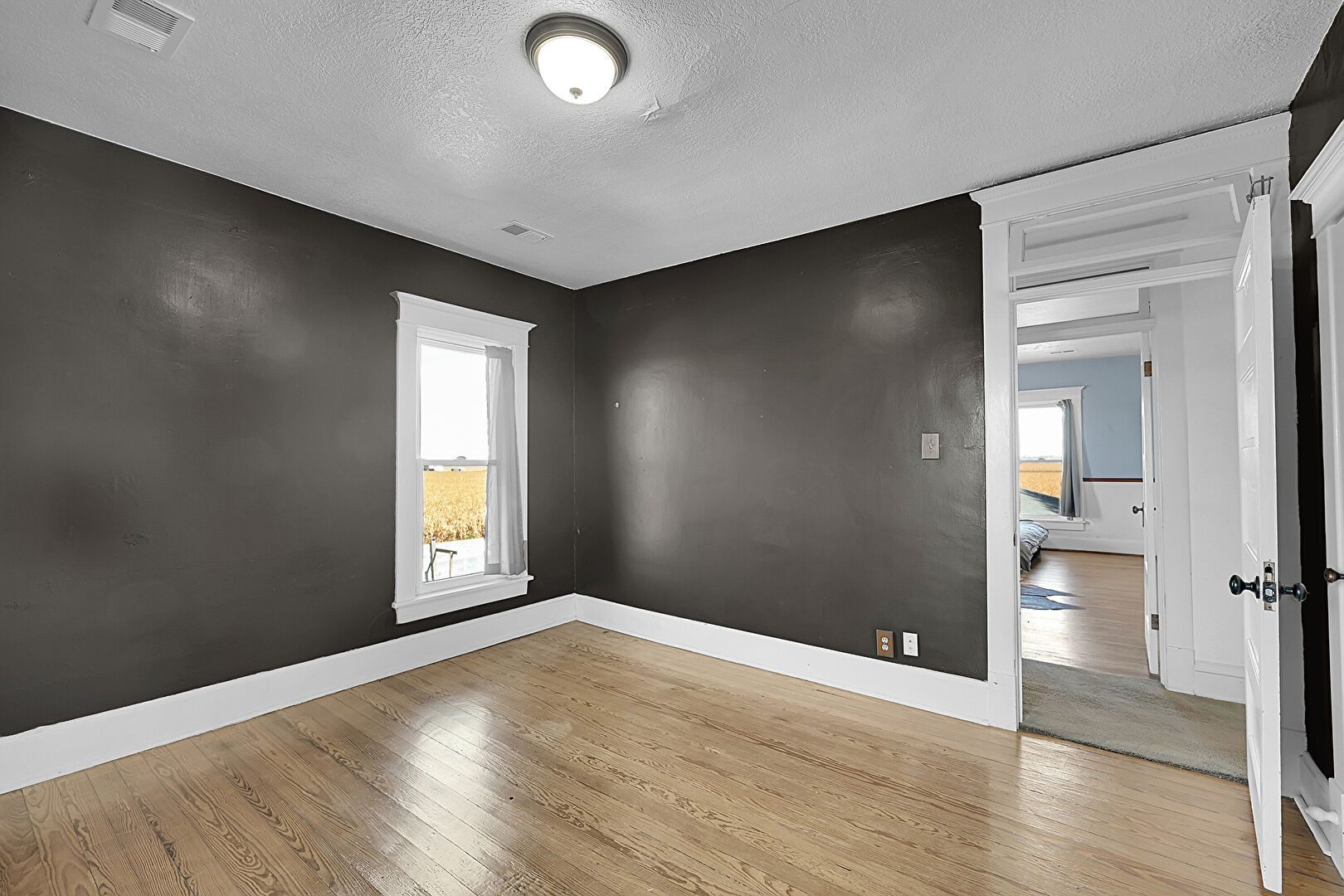 Baseboards Wall, Drywall, Natural Light, Textured Ceiling, Vent, Wood Finish Floor, Vent, Wood Finish Floor