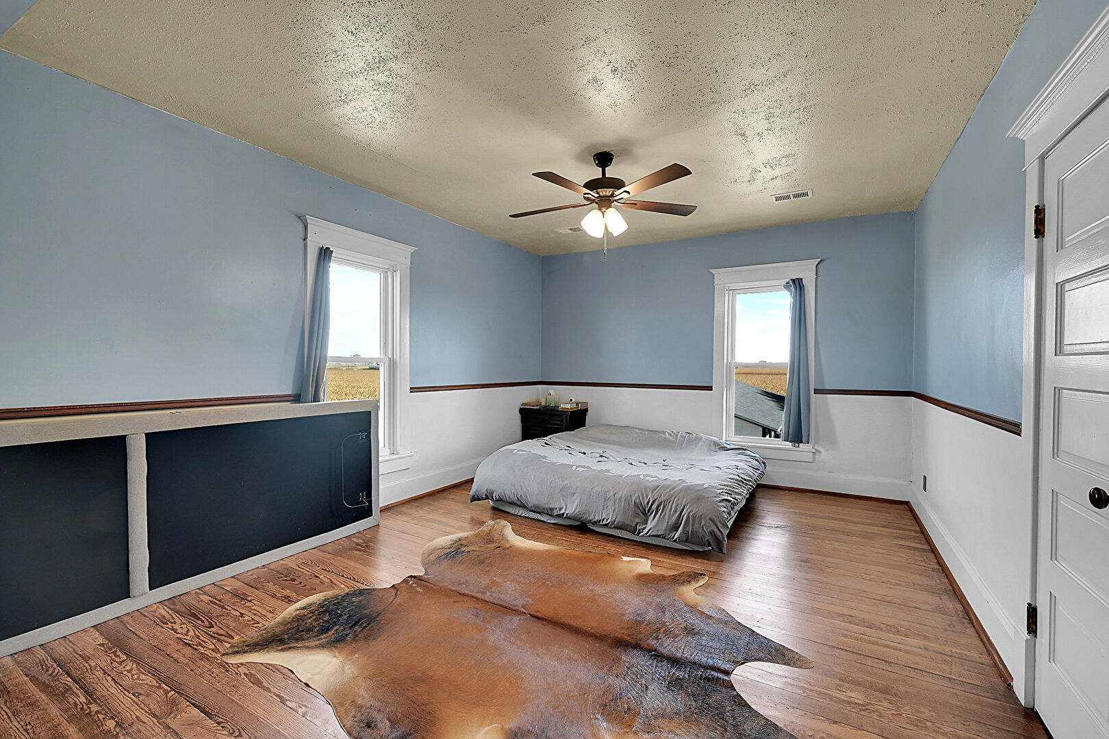 Baseboards Wall, Ceiling Fan, Drywall, Natural Light, Textured Ceiling, Vent, Wood Finish Floor, Baseboards Wall, Ceiling Fan, Textured Ceiling, Vent