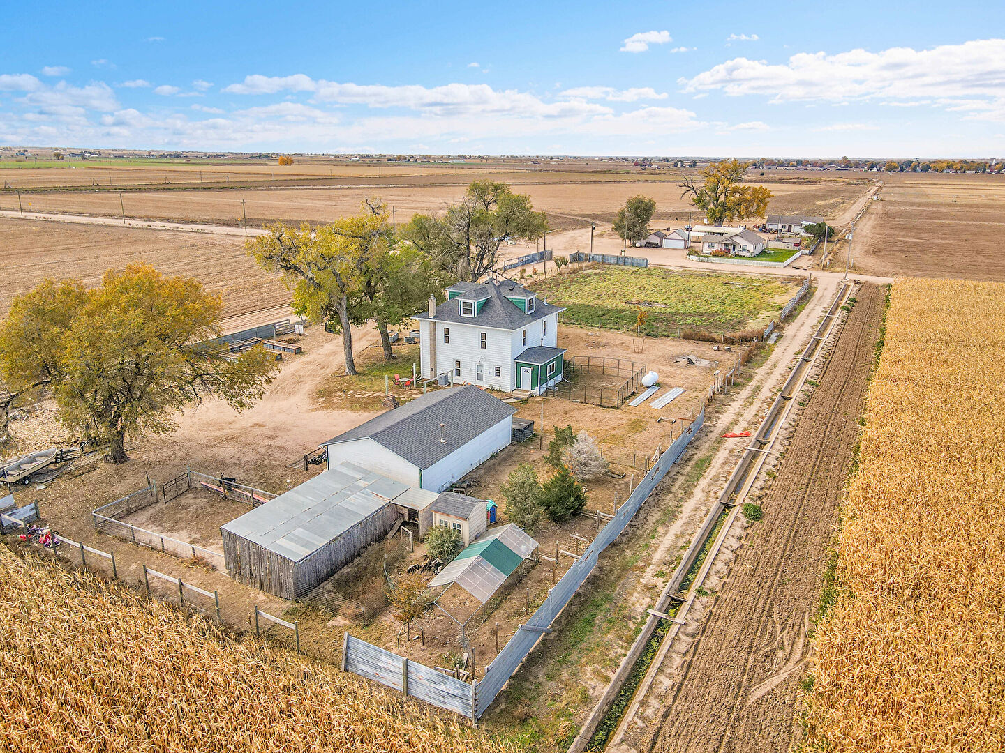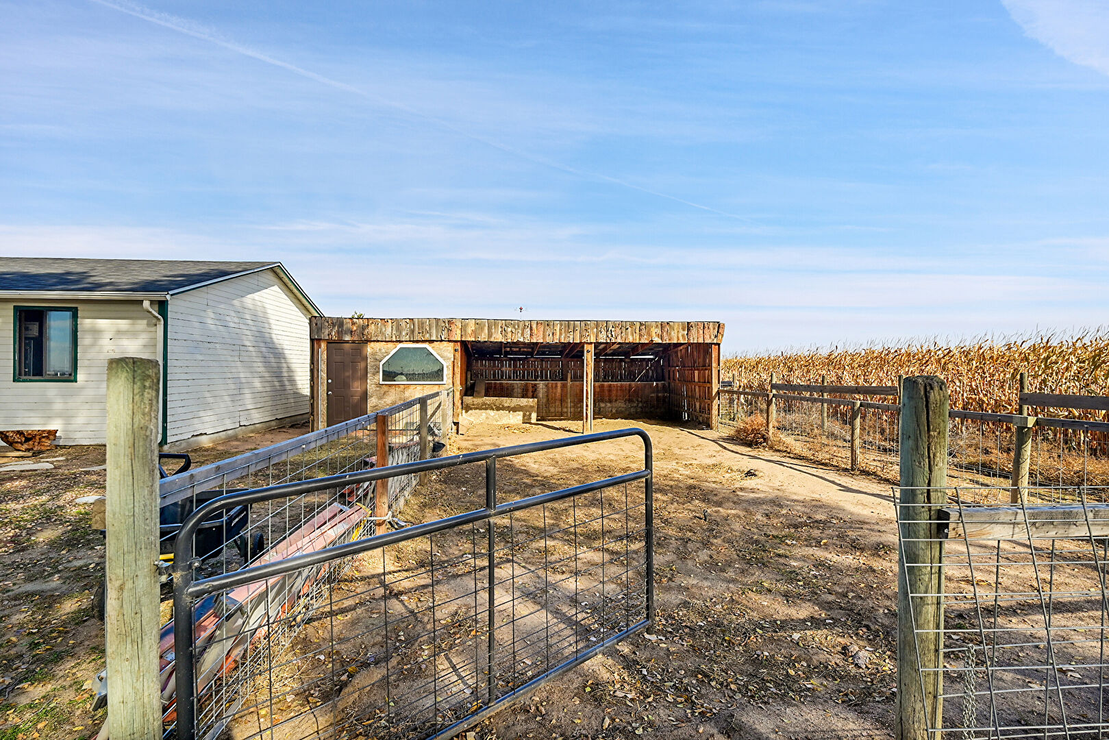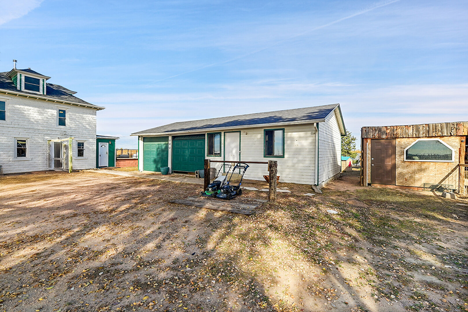Downspout, Driveway, Fence, Garage, Garden, Gutters, Horizontal Siding, Lawn, Outdoor Structure, Parking Pad, Rural View, Stable, Concrete Foundation, Driveway, Fence, Garden, Outdoor Structure, Rural View