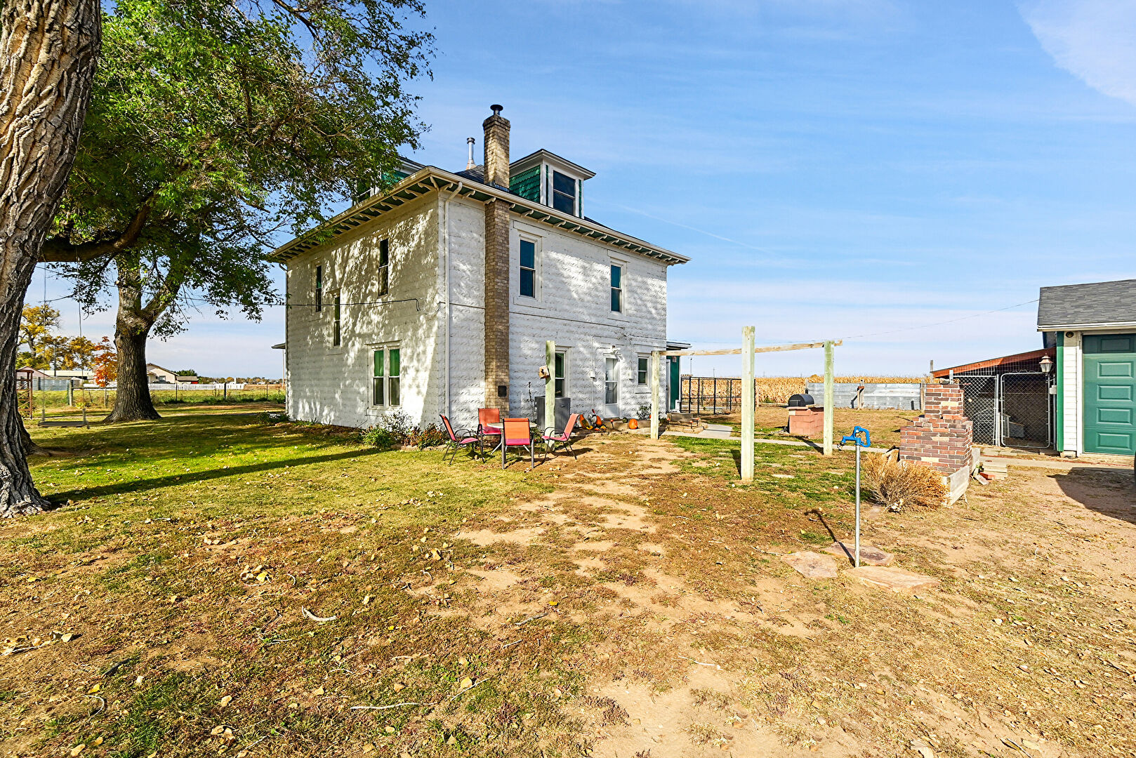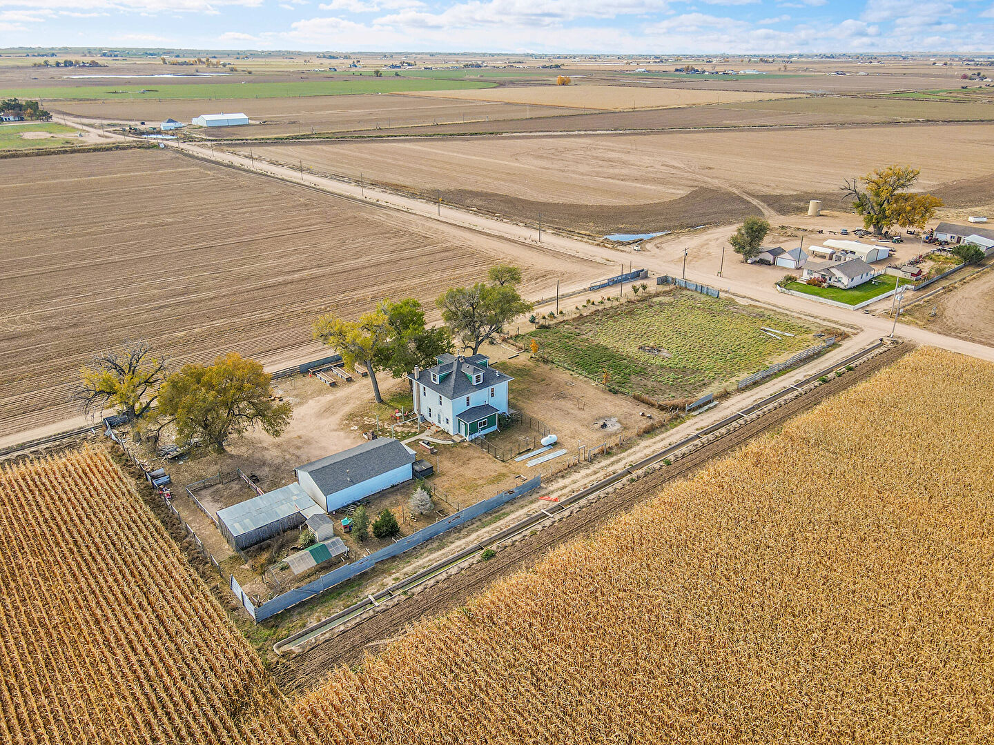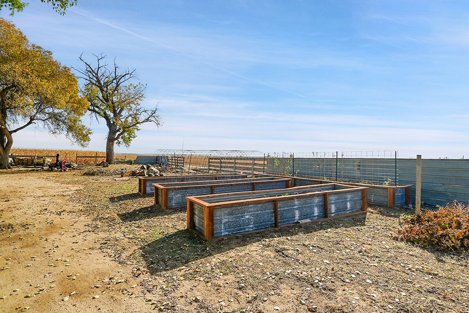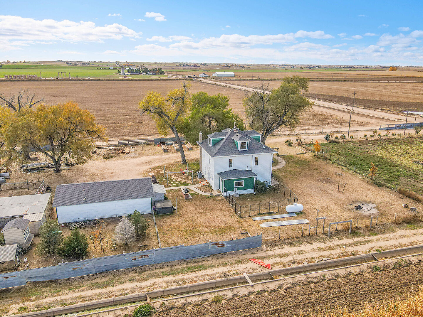 Downspout, Driveway, Fence, Garage, Garden, Gutters, Horizontal Siding, Lawn, Outdoor Structure, Parking Pad, Rural View, Stable, Concrete Foundation, Driveway, Fence, Garden, Outdoor Structure, Rural View