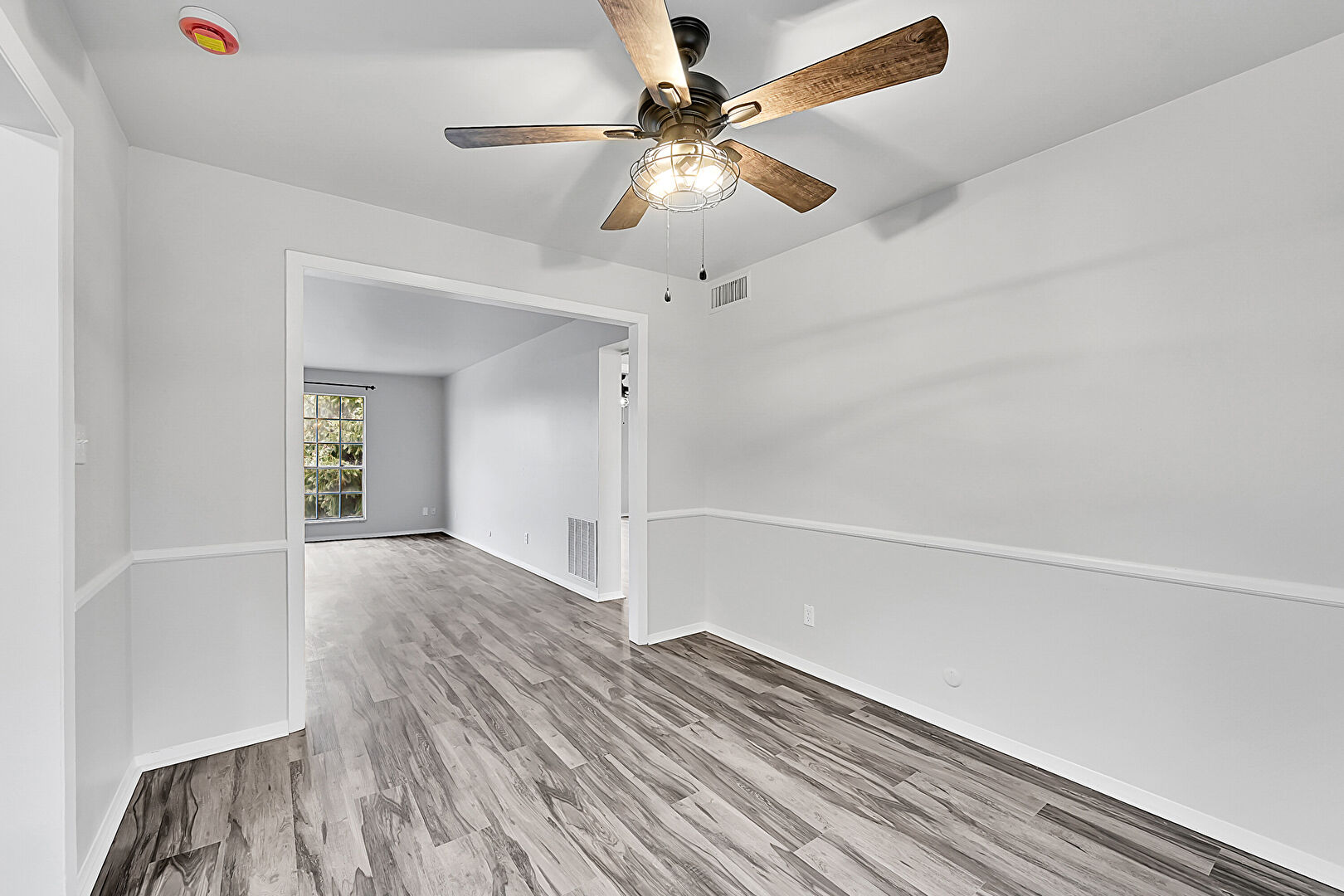 Baseboards Wall, Ceiling Fan, Drywall, Natural Light, Smoke Carbon Monoxide Detector, Vent, Wood Finish Floor, Drywall, Wood Finish Floor
