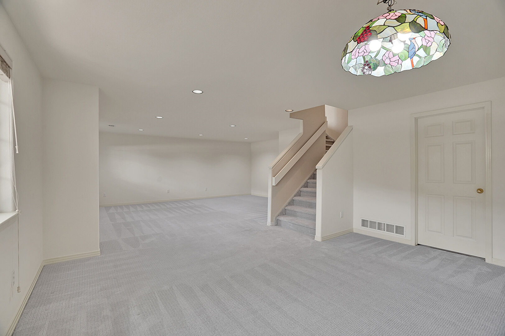 Baseboards Wall, Carpet, Drywall, Natural Light, Recessed Lighting, Stairs, Vent, Baseboards Wall, Carpet, Recessed Lighting, Stairs, Vent