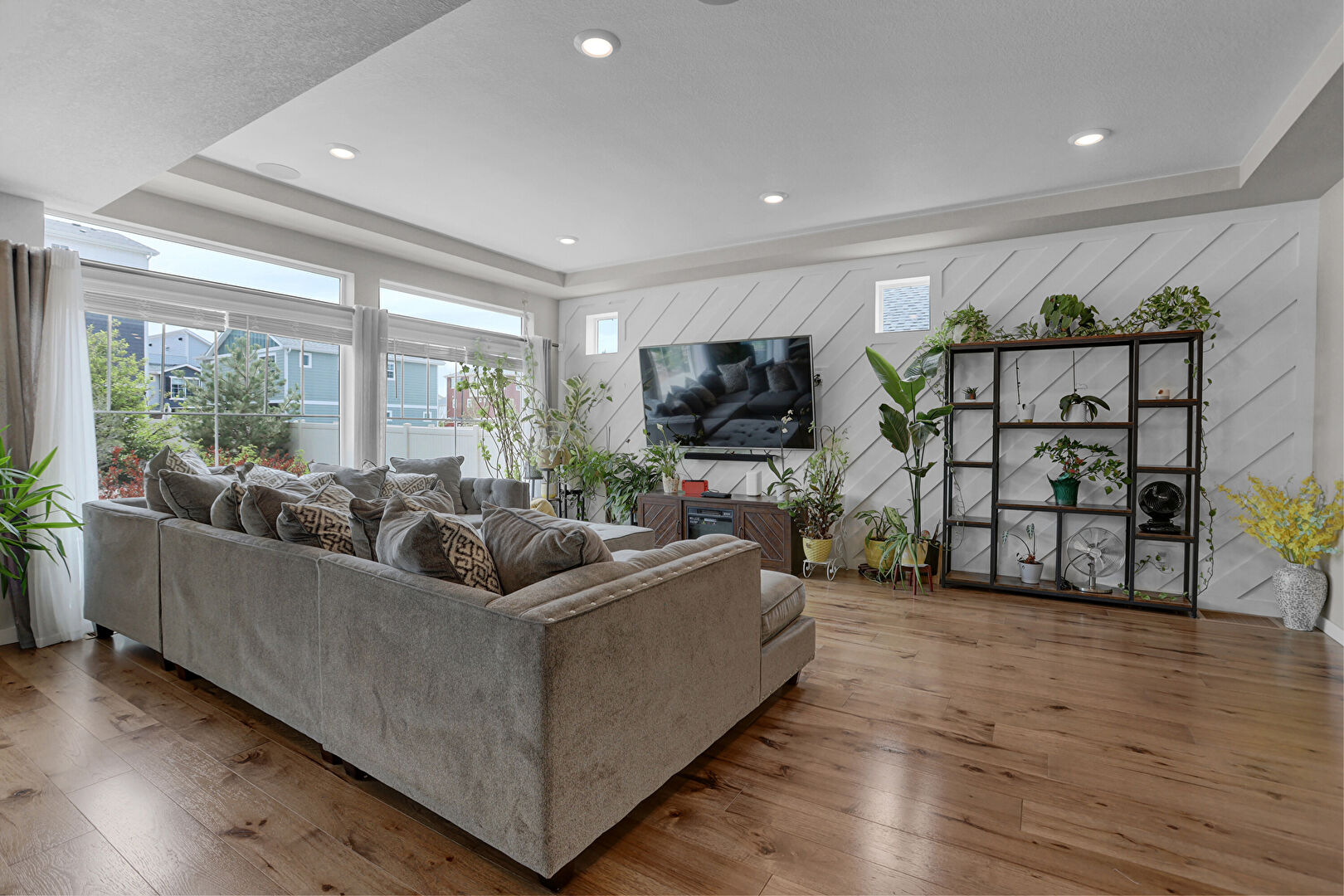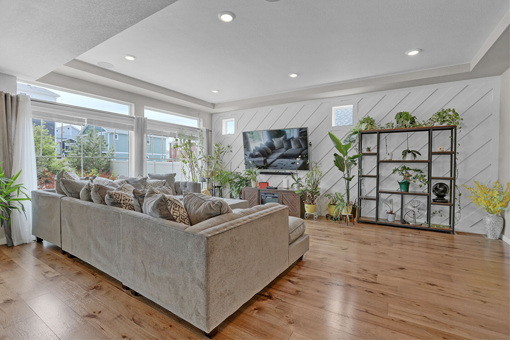 Baseboards Wall, Carpet, Drywall, Natural Light, Recessed Lighting, Stairs, Tray Ceiling, Wine Cooler, Wood Finish Floor, Wood Wall, Baseboards Wall, Drywall, Recessed Lighting, Stairs, Vent, Wood Finish Floor