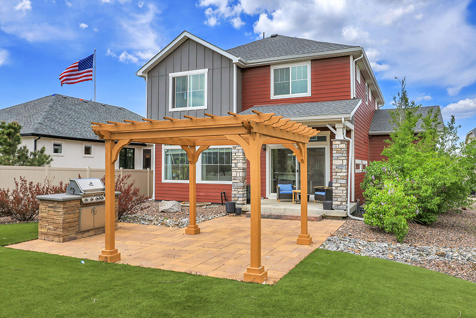 Fence, Grill, Outdoor Kitchen, Patio, Pergola, Lawn