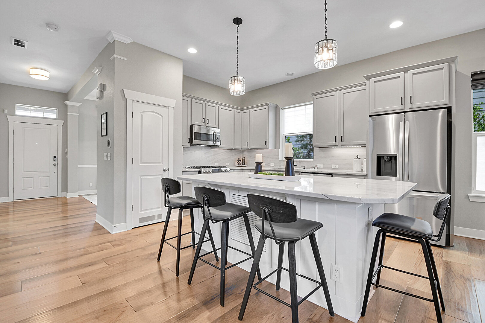 Arched Walkways, Baseboards Wall, Crown Molding, Drywall, Indoor Bar, L Shaped Kitchen, Natural Light, Notable Chandelier, Recessed Lighting, Smoke Carbon Monoxide Detector, Vent, Wine Cooler, Wood Finish Floor, Baseboards Wall, Crown Molding, Natural Light, Notable Chandelier, Wood Finish Floor
