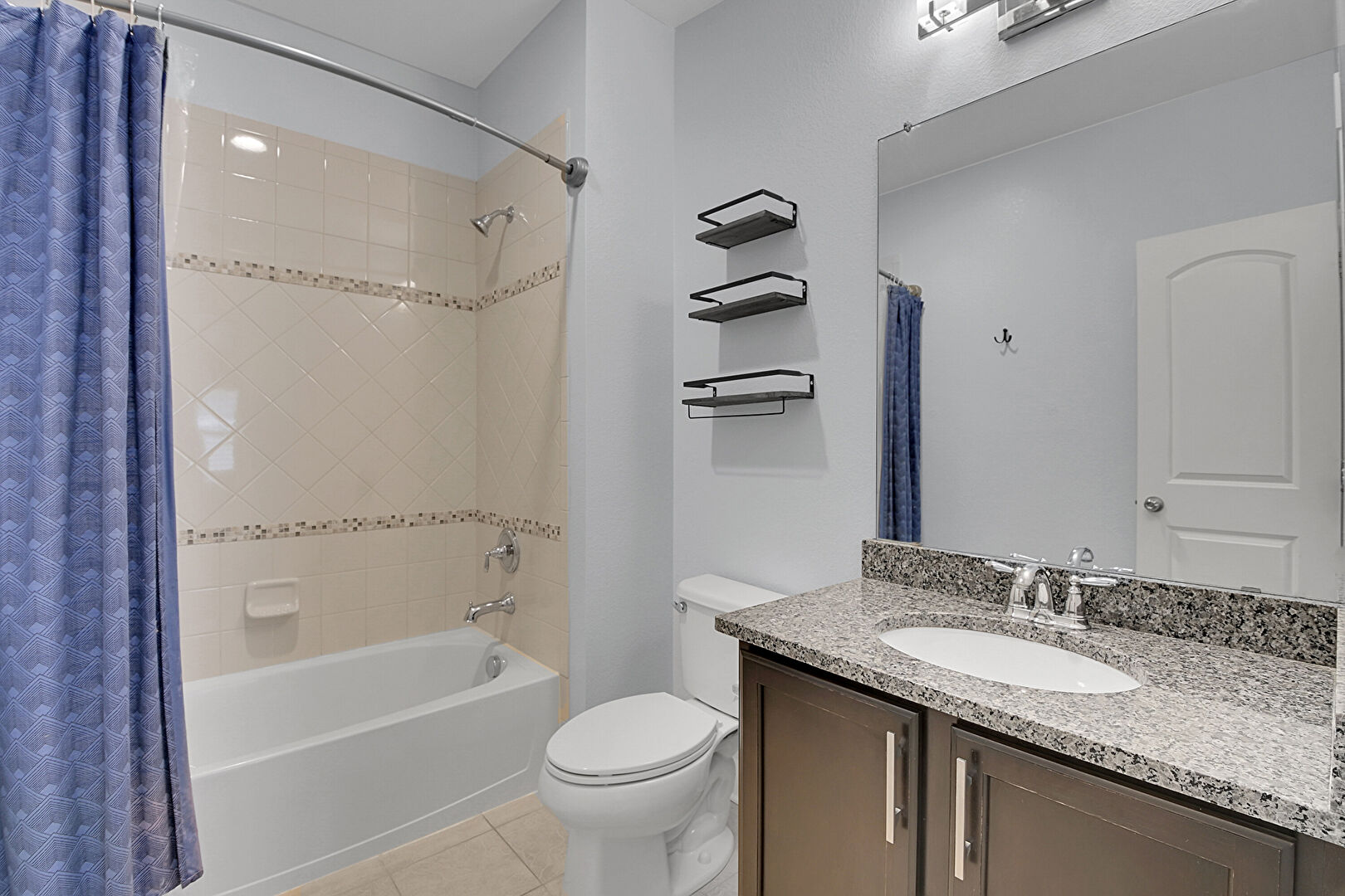 Baseboards Wall, Combined Bath Shower, Double Vanity, Drywall, Full Bathroom, Natural Light, Notable Chandelier, Recessed Lighting, Textured Wall, Tile Floor, Vanity, Vent, Water Closet, Baseboards Wall, Full Bathroom, Half Bathroom, Natural Light, Textured Wall, Tile Floor