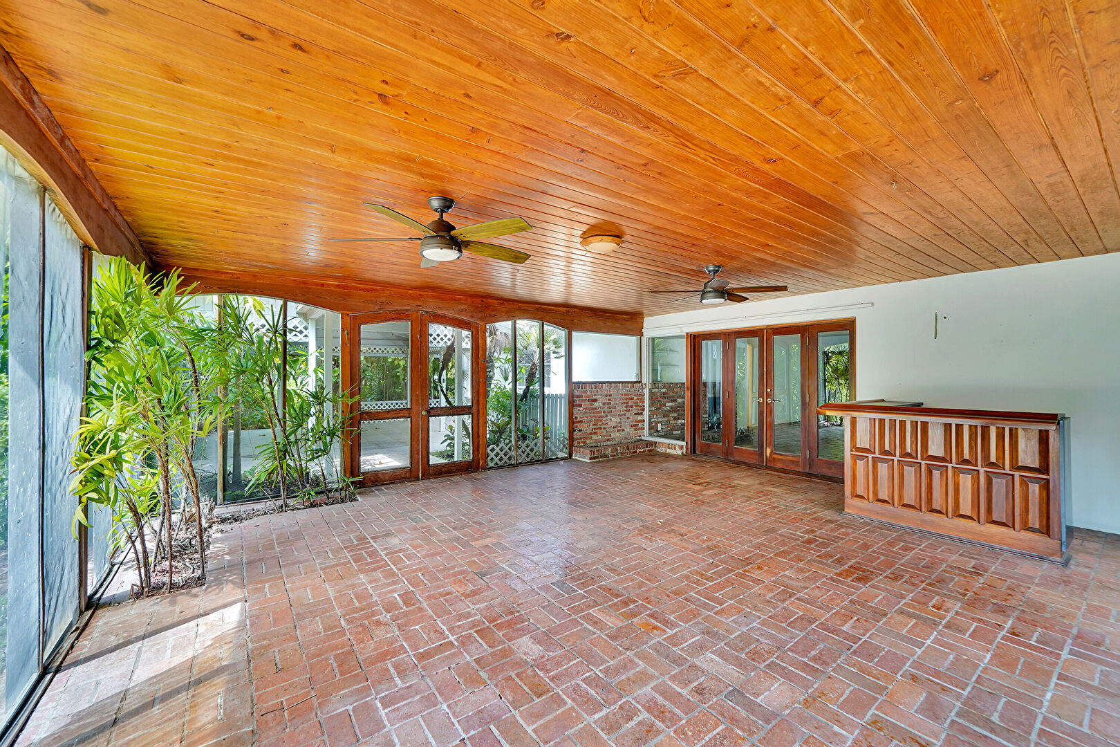 Beamed Ceiling, Brick Finish Floor, Cathedral Ceiling, Ceiling Fan, Drywall, French Doors, Indoor Bar, Natural Light, Patio, Sunroom, Wood Ceiling, Ceiling Fan, French Doors, Gazebo, Natural Light, Satellite Dish, Wood Ceiling