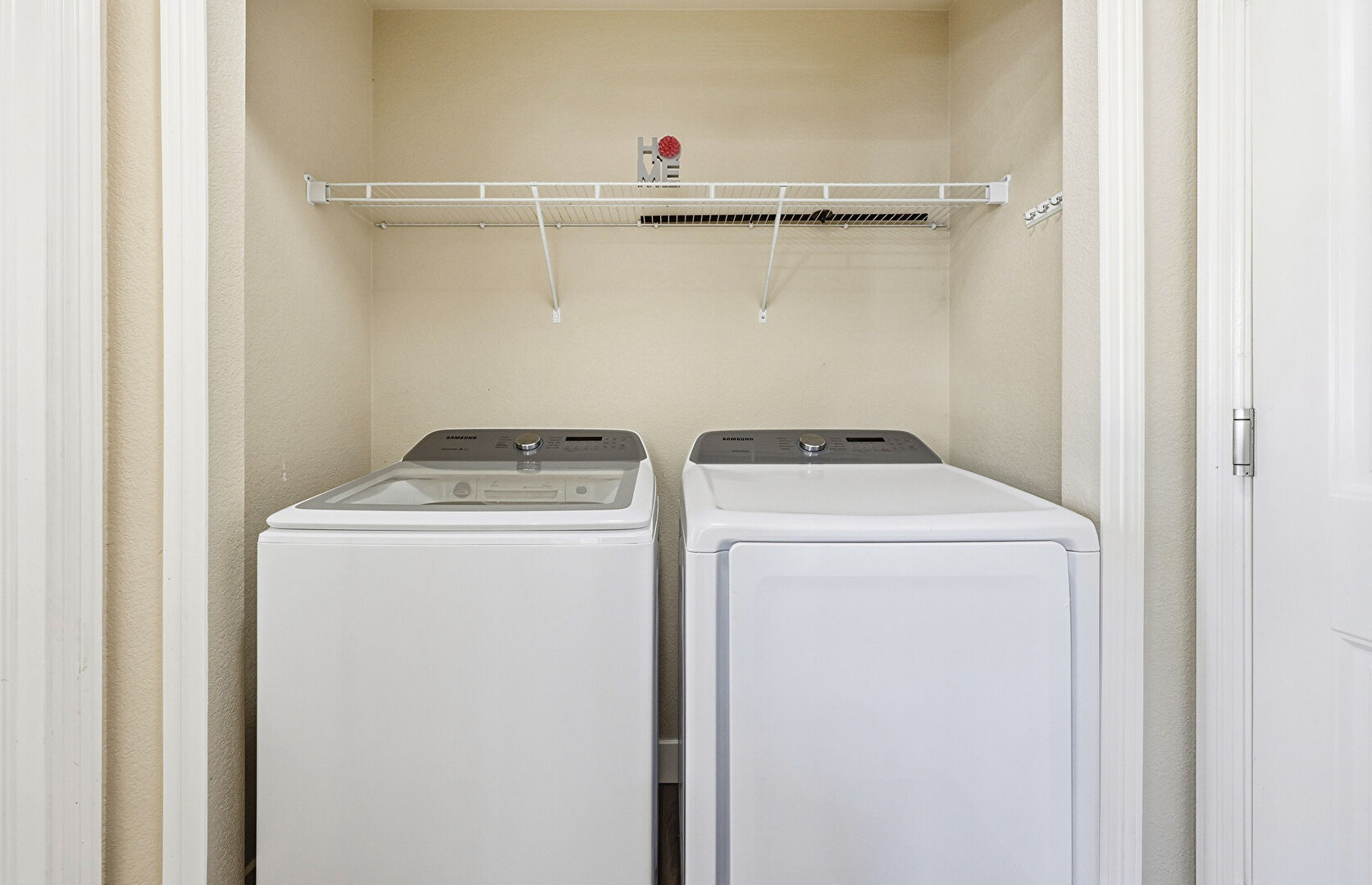 Black Cabinets, Butcher Block Countertops, Crown Molding Cabinets, Drywall, Kitchen Island, Laundry, Natural Light, Recessed Lighting, Shaker Cabinets, Washer Dryer, Wood Finish Floor, Vent