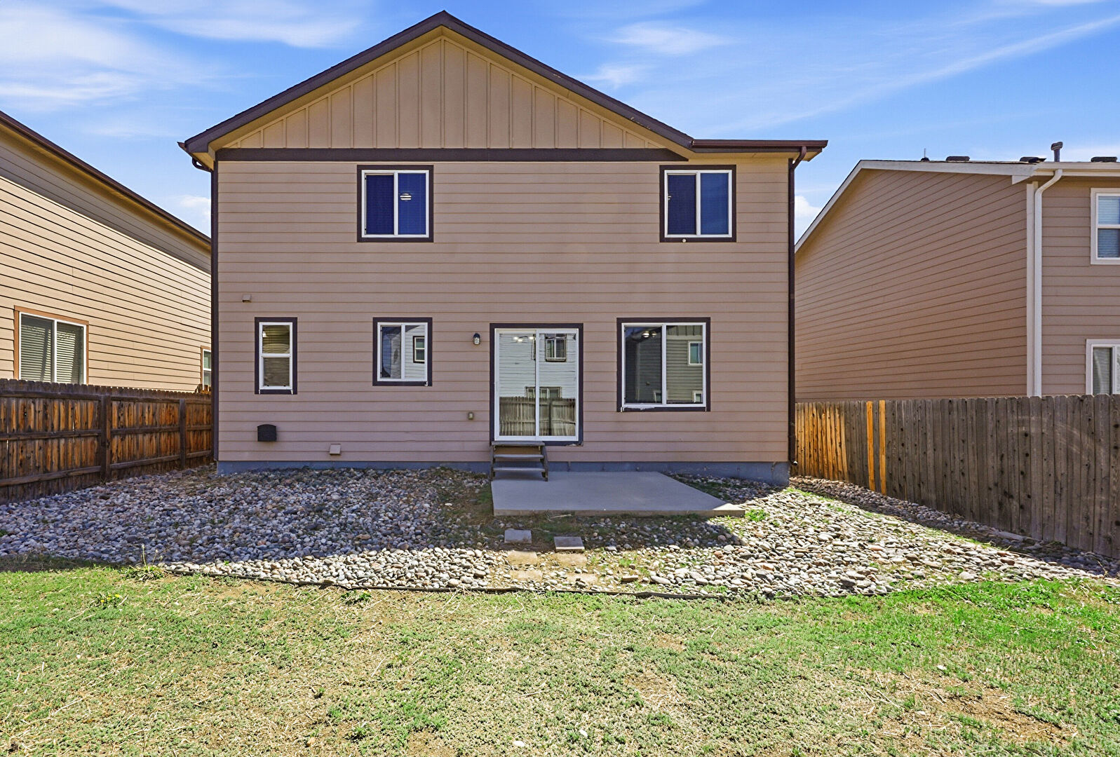 Board Batten Siding, Concrete Foundation, Downspout, Fence, Gutters, Horizontal Siding, Lawn, Vertical Siding, Patio