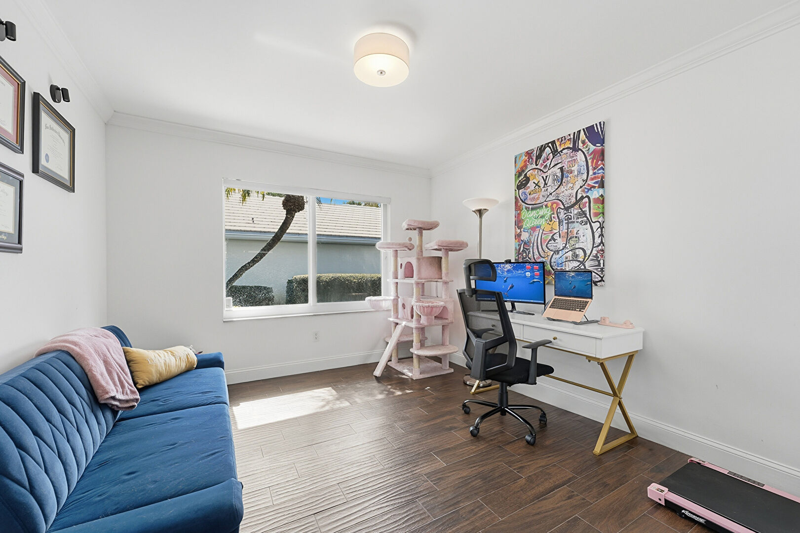 Baseboards Wall, Dehumidifier, Drywall, Vaulted Ceiling, Wood Finish Floor, Natural Light