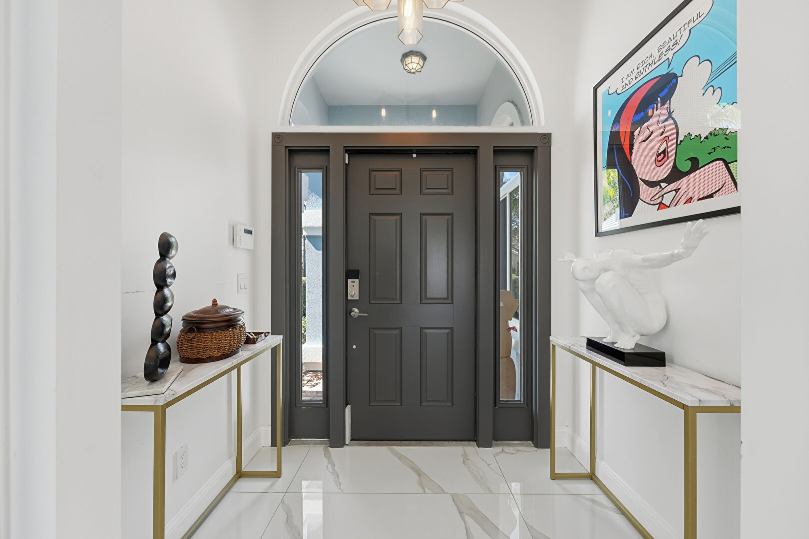 Arched Walkways, Baseboards Wall, Cathedral Ceiling, Drywall, High Ceiling, Marble Finish Floor, Natural Light, Notable Chandelier, Smoke Carbon Monoxide Detector, Vaulted Ceiling, Vent, Arched Walkways, Drywall, High Ceiling, Natural Light, Vent