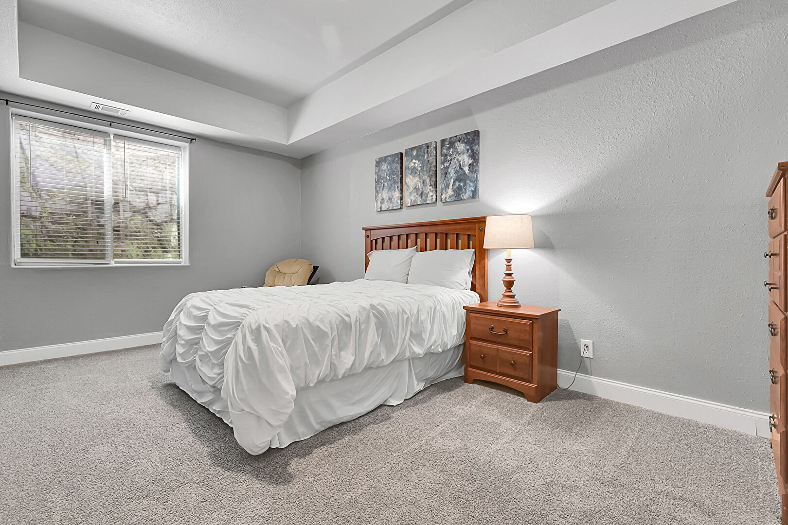 Baseboards Wall, Beamed Ceiling, Carpet, Ceiling Fan, Closet, Drywall, Ensuite Bathroom, Natural Light, Smoke Carbon Monoxide Detector, Textured Wall, Tray Ceiling, Vaulted Ceiling, Vent, Wood Finish Floor, Baseboards Wall, Beamed Ceiling, Carpet, Closet, Drywall, Natural Light, Recessed Lighting, Vent