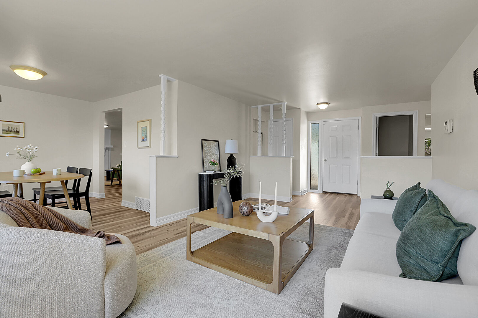 Baseboards Wall, Ceiling Fan, Dehumidifier, Drywall, Fireplace, Natural Light, Security Camera, Stone Finish Floor, Wood Finish Floor, Drywall, Vent, Wood Finish Floor