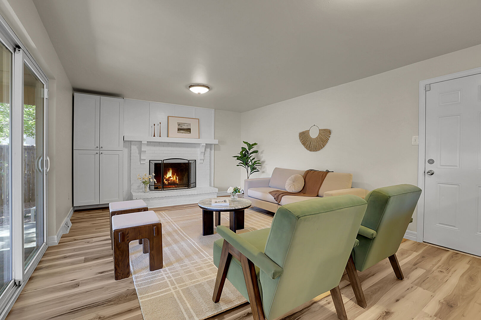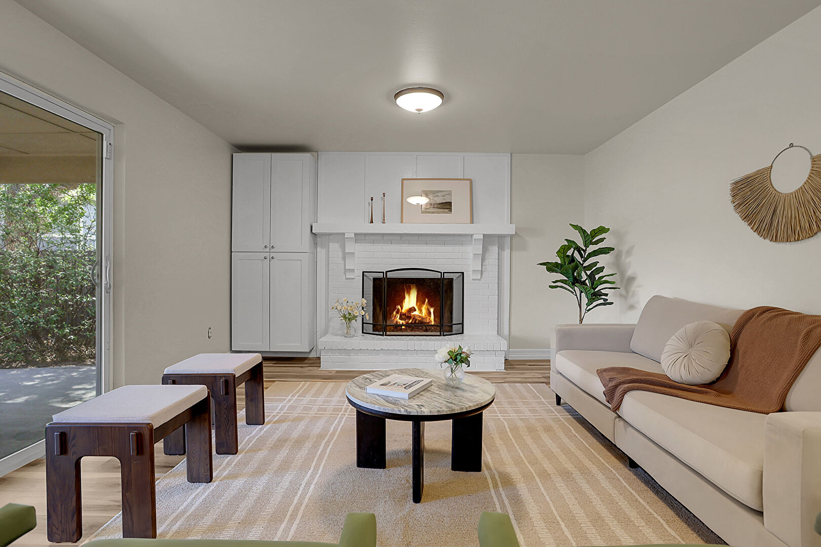 Baseboards Wall, Carpet, Fireplace, Natural Light, Drywall