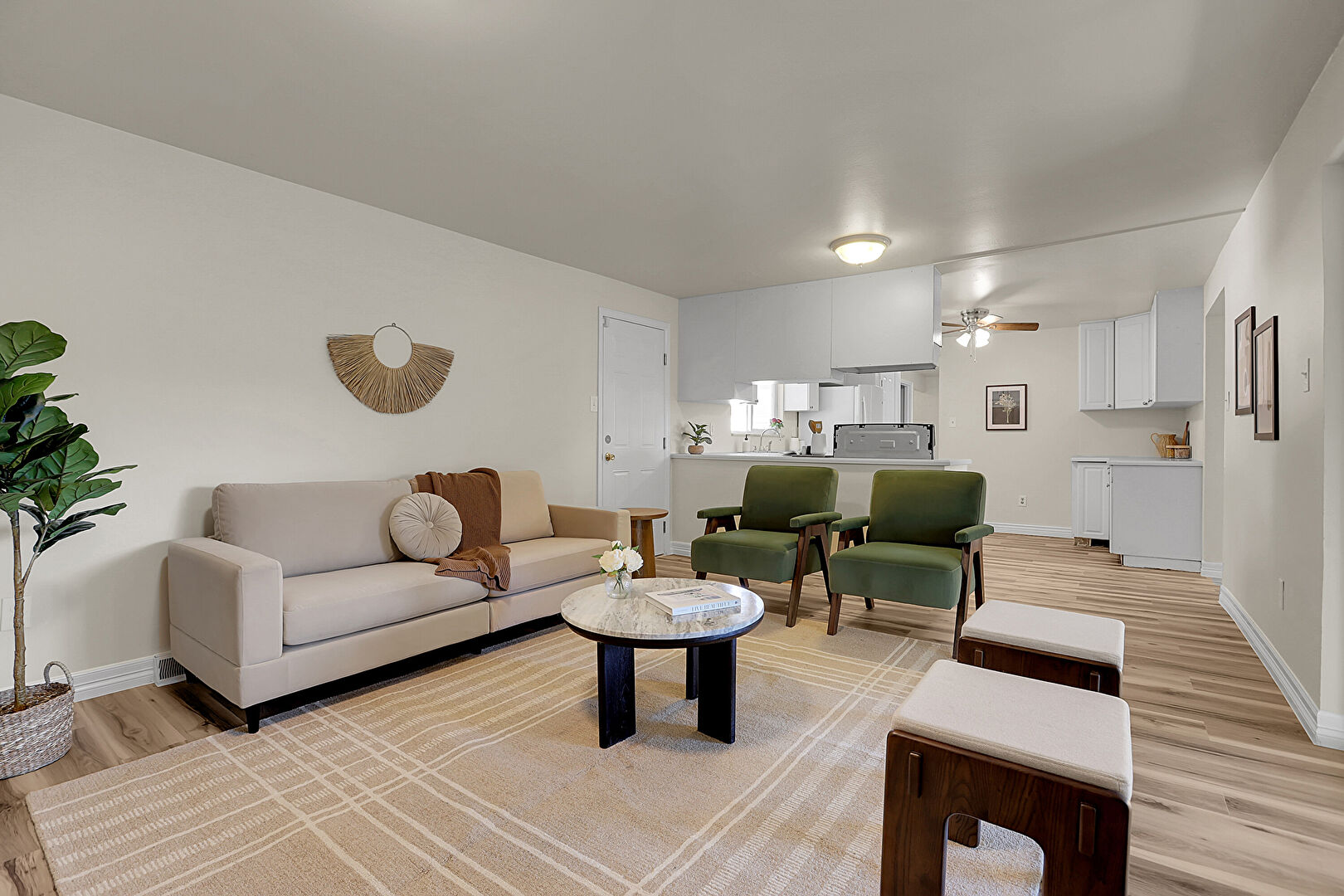 Baseboards Wall, Carpet, Ceiling Fan, Decorative Columns, Drywall, Fireplace, Natural Light, Smoke Carbon Monoxide Detector, Wood Finish Floor, Baseboards Wall, Carpet, Drywall, Fireplace, Natural Light, Vent, Wall Mounted Ac, Wood Finish Floor