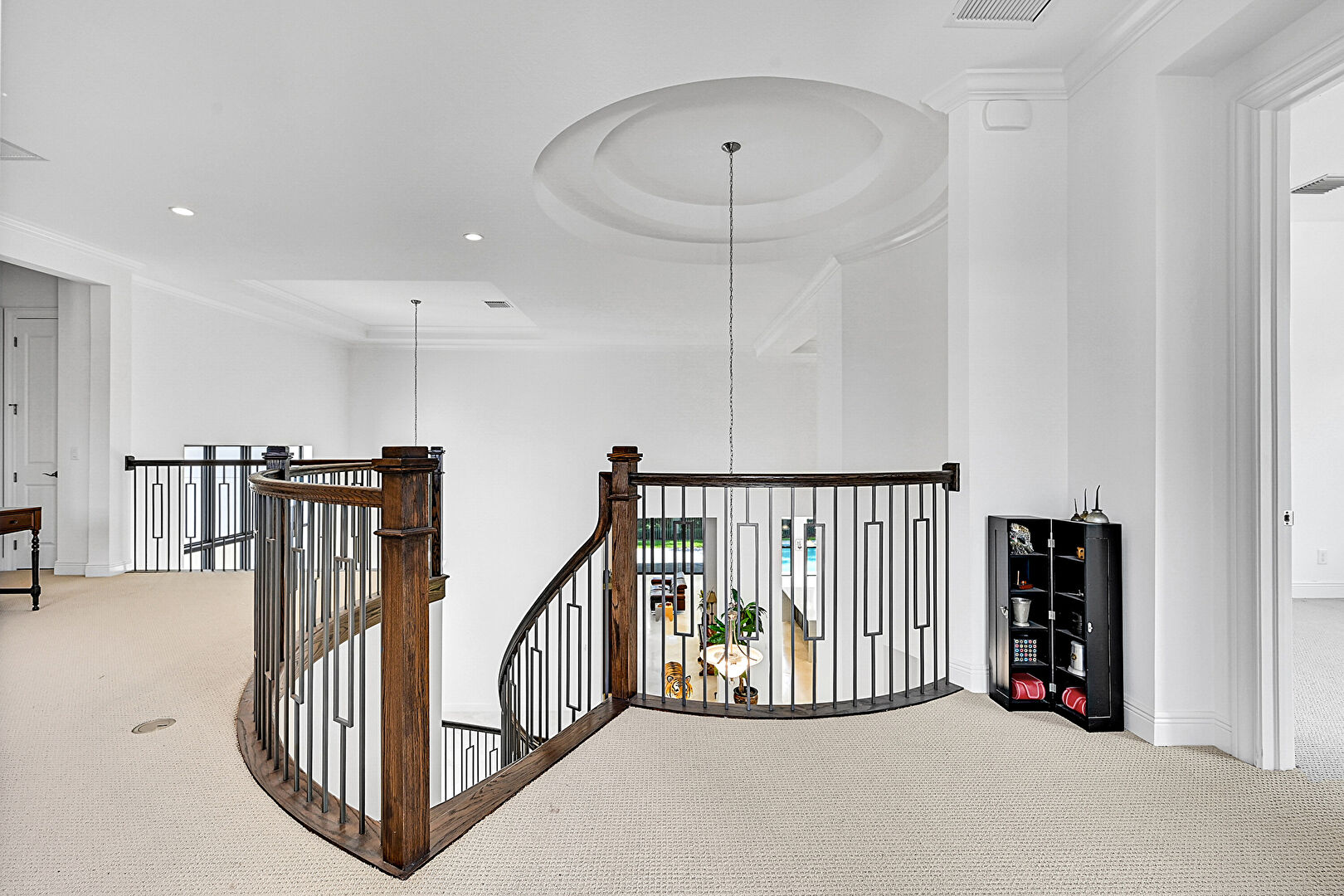 Baseboards Wall, Carpet, Crown Molding, Drywall, Natural Light, Recessed Lighting, Tray Ceiling, Upstairs Landing, Vent, Loft, Natural Light, Recessed Lighting