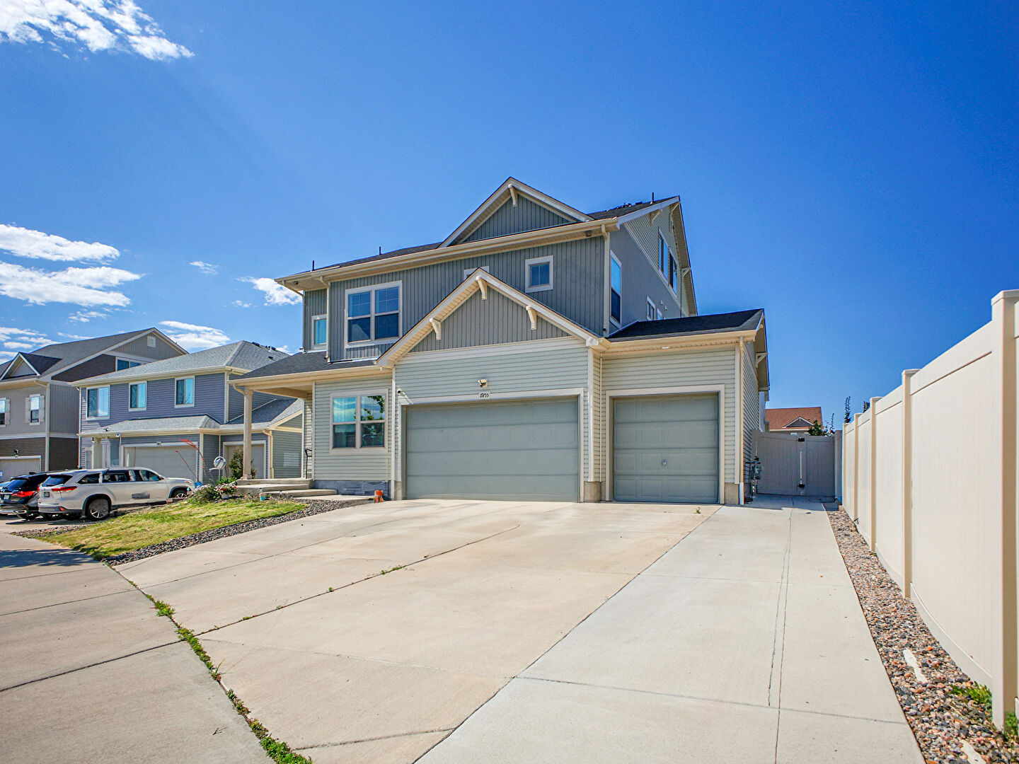 Board Batten Siding, Built In Garage, Concrete Foundation, Downspout, Driveway, Electric Meter, Fence, Gate, Gutters, Horizontal Siding, Lawn, Porch, Residential View, Vertical Siding, Driveway, Electric Meter, Gutters, Vertical Siding