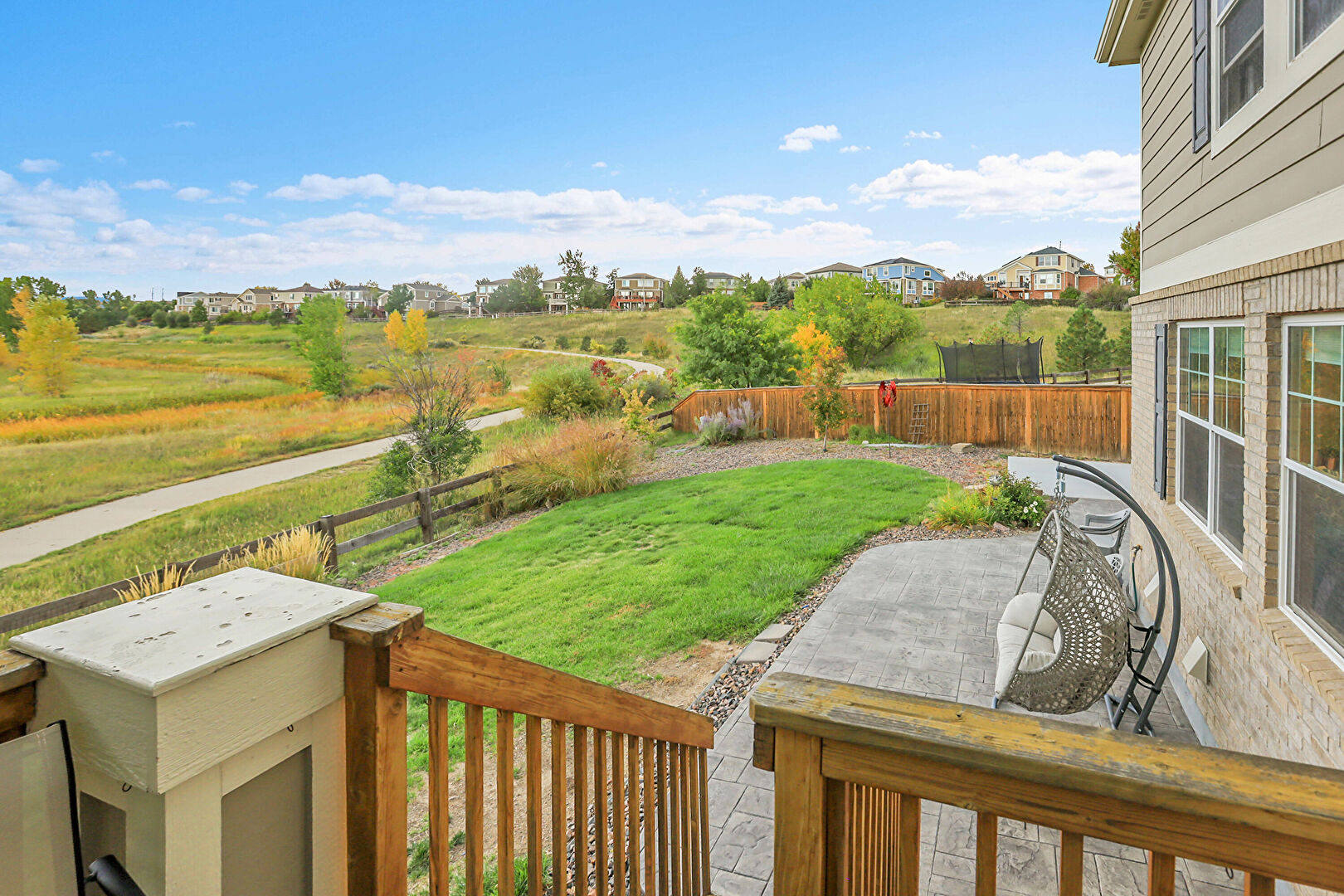 Deck, Fence, Lawn, Residential View, Rural View, Stairs, Fence, Lawn, Patio
