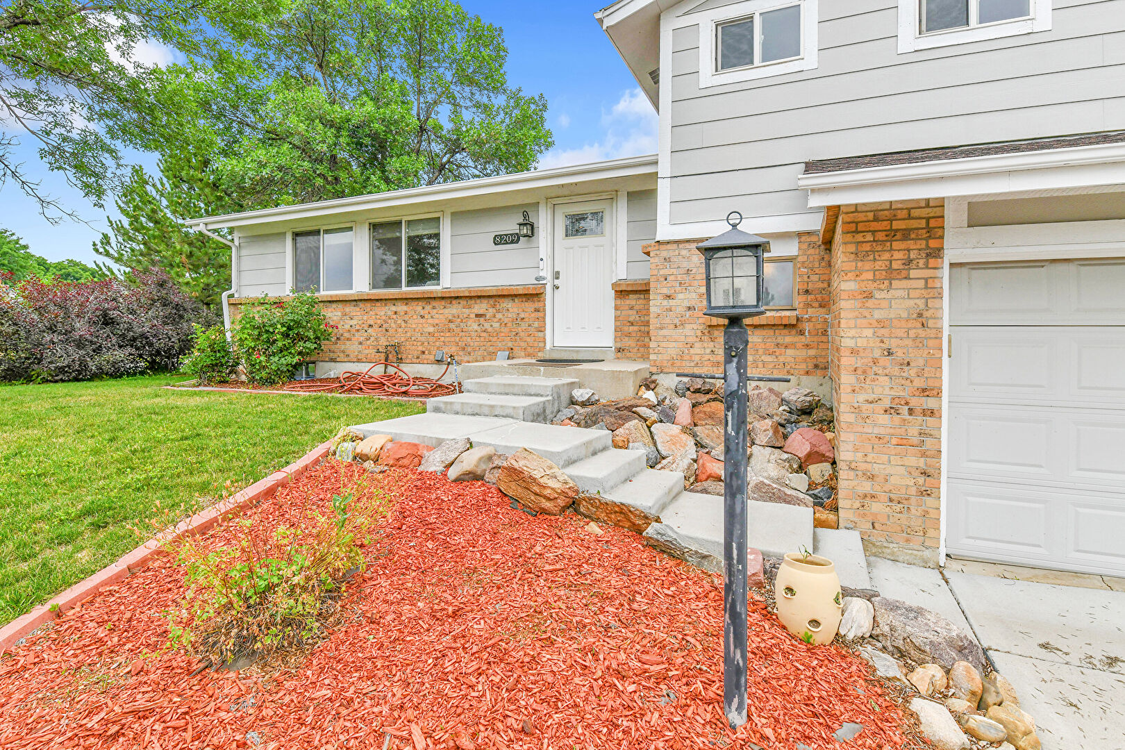 Brick Siding, Concrete Foundation, Downspout, Garage, Gutters, Horizontal Siding, Stoop, Lawn