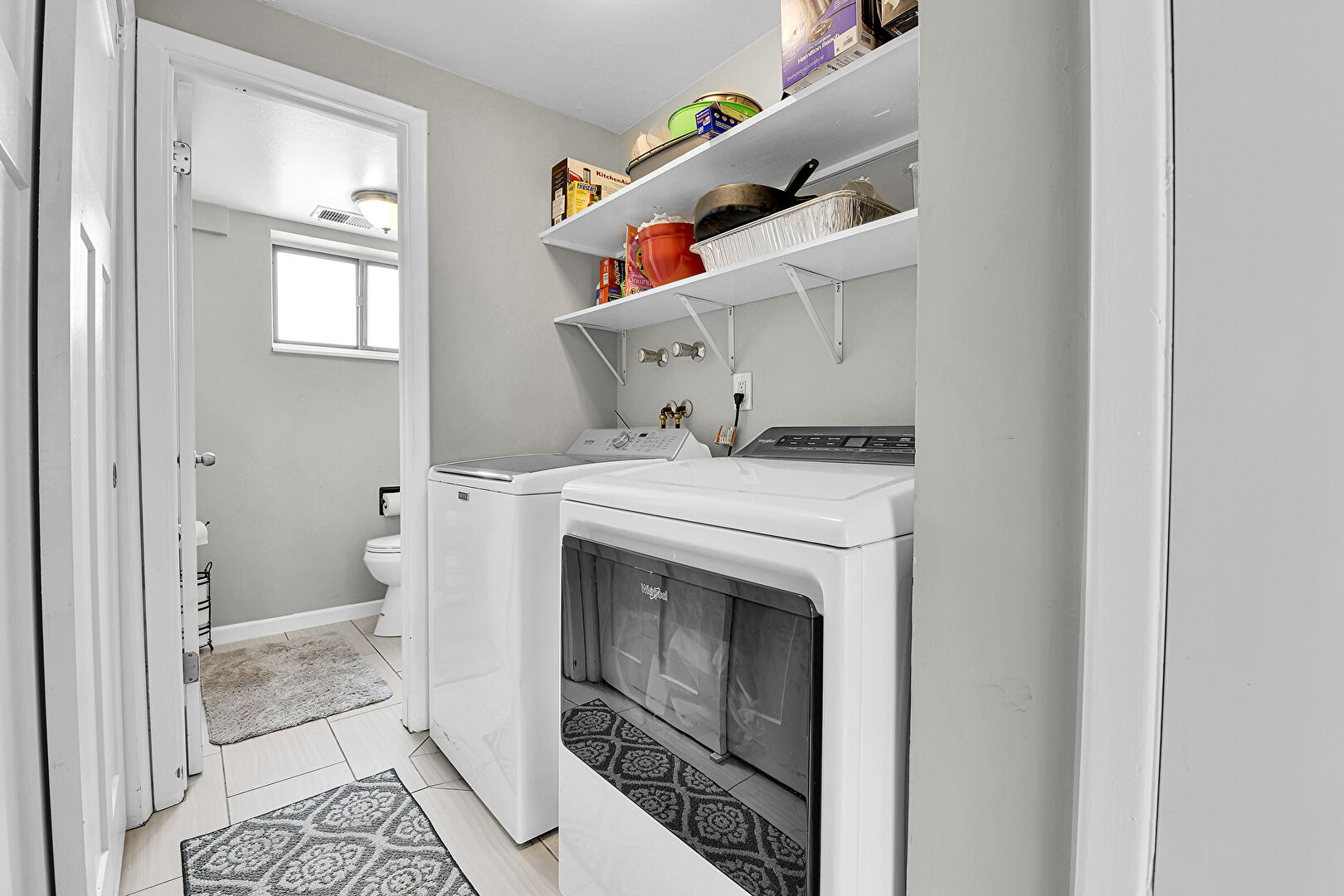Drywall, Laundry, Natural Light, Tile Floor, Baseboards Wall