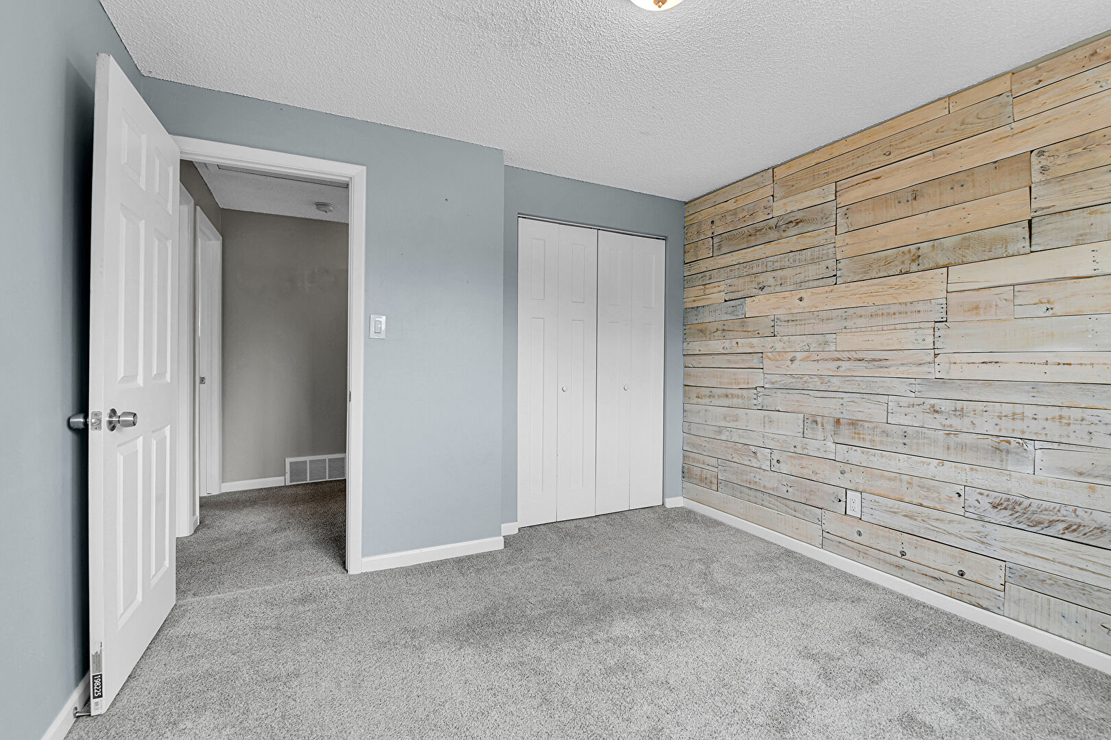 Baseboards Wall, Carpet, Closet, Drywall, Textured Ceiling, Wood Wall, Vent