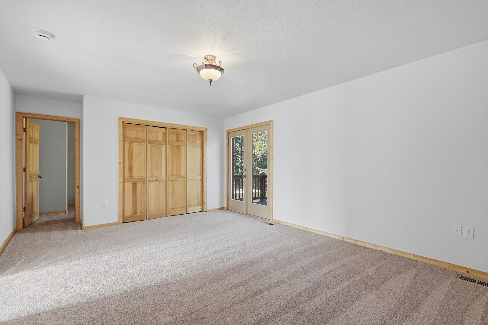 Access To Exterior, Baseboards Wall, Carpet, Closet, Drywall, French Doors, Natural Light, Smoke Carbon Monoxide Detector, Textured Ceiling, Vent, Carpet, Drywall, Natural Light, Textured Ceiling