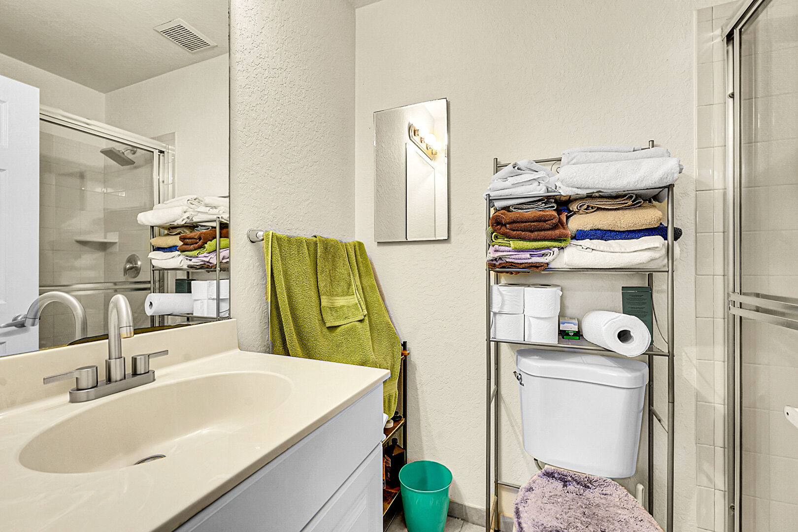 Full Bathroom, Textured Wall, Vanity, Vent