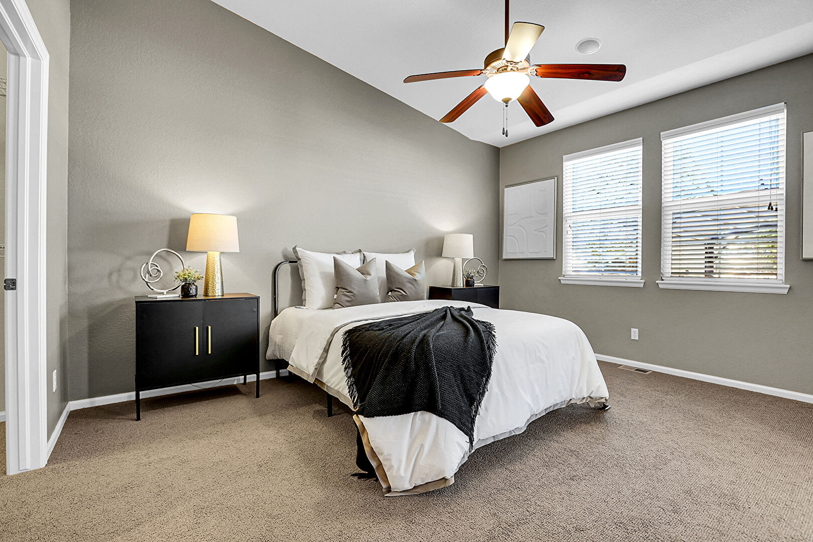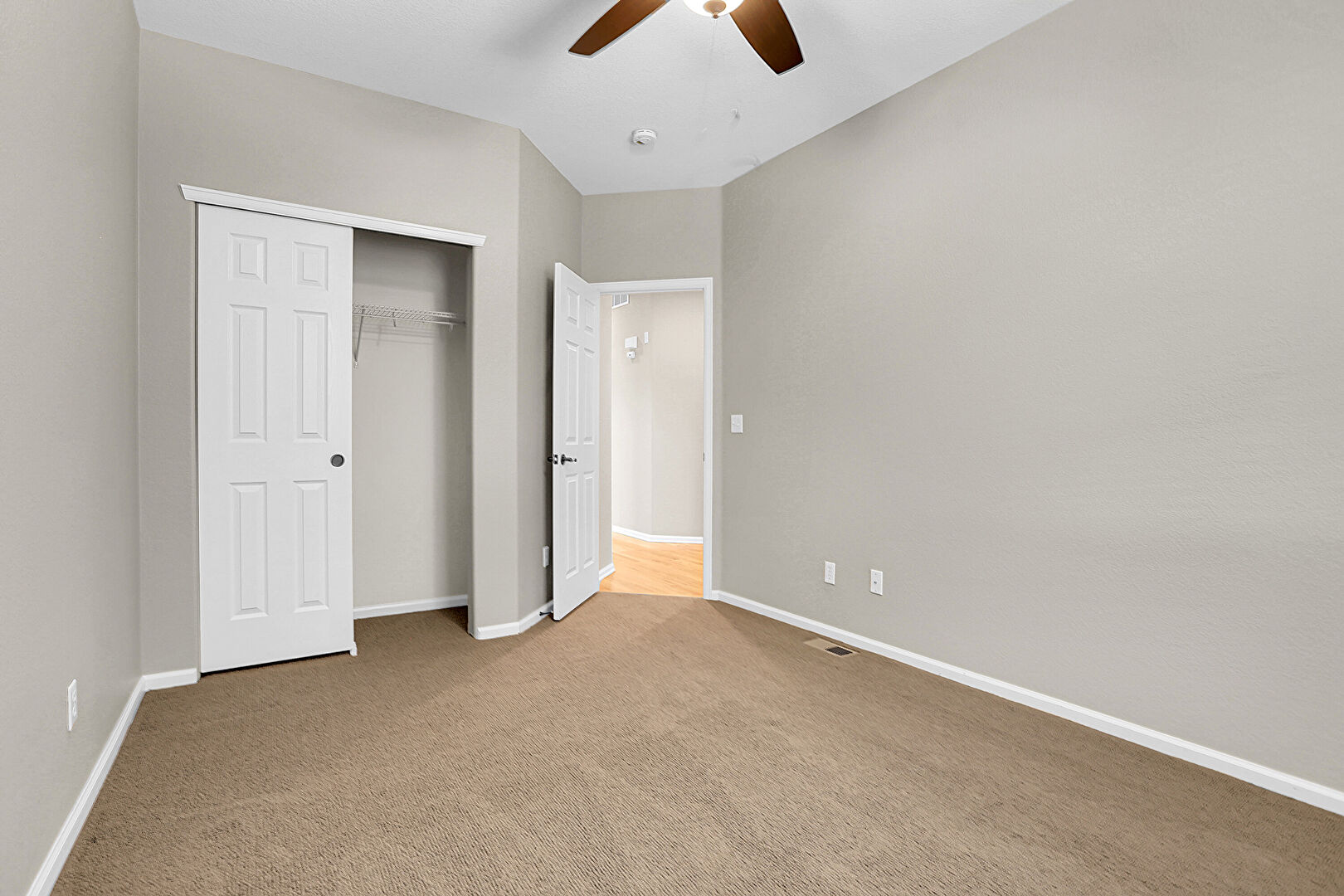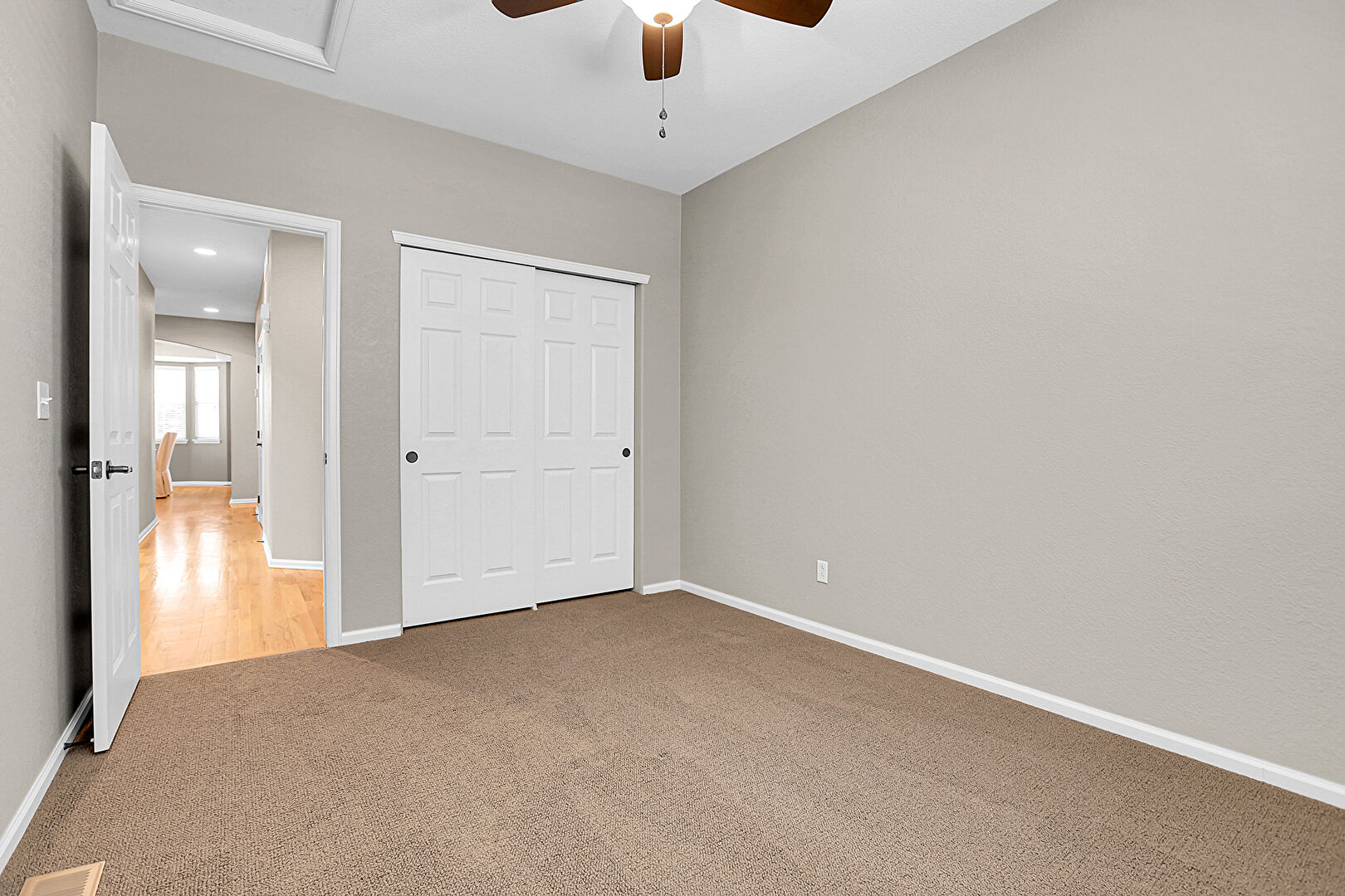 Baseboards Wall, Carpet, Ceiling Fan, Natural Light, Textured Wall, Baseboards Wall, Textured Wall